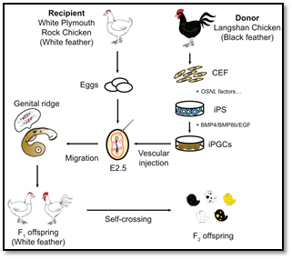 5月20日,《Nature Communications》(自然通讯)杂志在线发表了李碧春和陈国宏教授研究团队的最新研究文章《Production of viable chicken by allogeneic transplantation of primordial germ cells induced from somatic cells》。该文章阐述了将鸡高度分化的成纤维细胞逆转为生殖干细胞繁殖后代的理论和方法体系。这一研究突破了禽类动物不能克隆的“瓶颈”,为禽类动物的保种和扩繁,特别是濒危禽类种质资源保护和复原提供了强有力的技术支撑。同时,该技术体系还可结合目前成熟的基因编辑技术,高效地获取基因修饰后代,可加快禽类动物的生物工程育种进程。