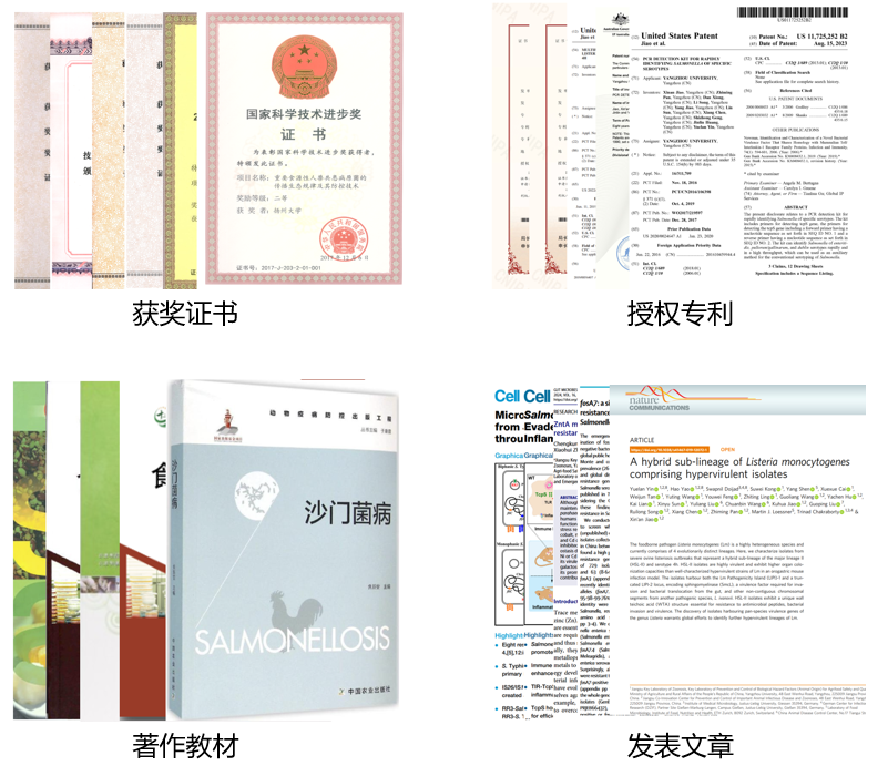 研究室获得国家科学技术进步奖二等奖1项成果、省级科技进步一、二、三等奖12项成果,授权发明专利63项、新兽药证书1项,制订国家/地方标准5项,出版著作教材14部,在The Lancet Microbe,Nature Communications,Cell Reports,Gut Microbes等国际主流期刊发表学术论文600余篇。