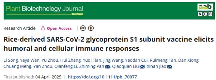 近日,Plant Biotechnology Journal杂志在线发表了由扬州大学焦新安和刘巧泉课题组合作撰写的“Rice-derived SARS-CoV-2 glycoprotein S1 subunit vaccine elicits humoral and cellular immune responses”论文。该研究工作通过构建含不同启动子的载体并转化水稻,获得表达新冠病毒S1蛋白的转基因水稻。rS1蛋白可在转基因水稻种子中表达,且S1基因插入不影响水稻籽粒大小和重量。将纯化的rS1蛋白与铝佐剂联合使用,可诱导小鼠产生增强的体液免疫应答,与鼠伤寒沙门菌鞭毛蛋白(FliC)佐剂联合使用,具有诱导体液和细胞免疫潜力。研究团队报道的这一基于水稻生物反应器表达亚单位疫苗策略,为开发安全、有效且经济的新冠疫苗提供了新路径,并且这一策略可以普遍应用于其它病毒疫苗的研发。