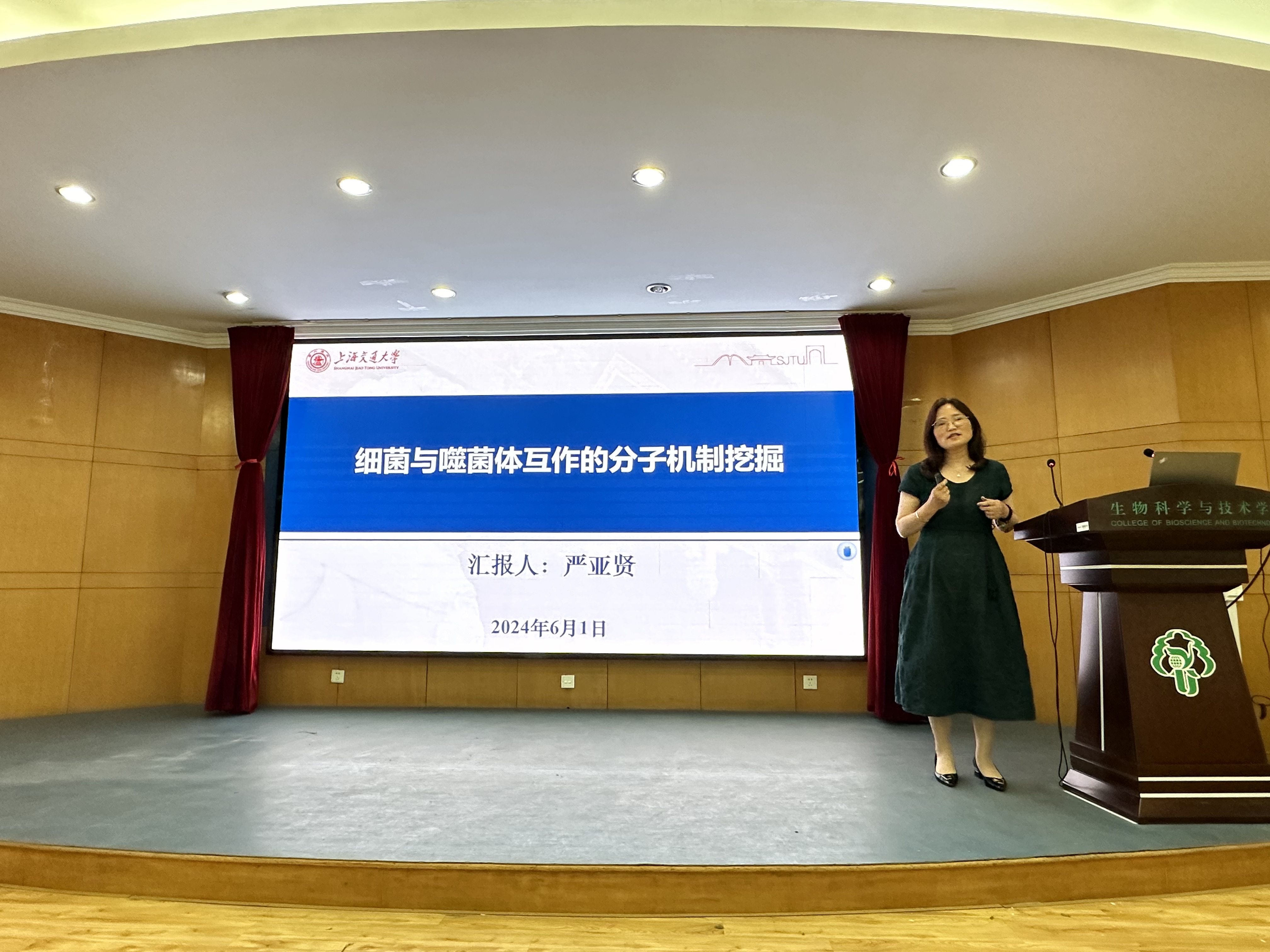 严亚贤教授以“细菌与噬菌体互作的分子机制挖掘”为题,从抗生素的滥用和细菌耐药性这个热点问题引入,讲解了噬菌体在遏制耐药细菌生长和侵染中的应用,深入讲解了二硫化物氧化酶操控噬菌体裂解释放的分子机制,同时对抗噬菌体活性代谢小分子进行了鉴定,解析了噬菌体与细菌的互作关系。