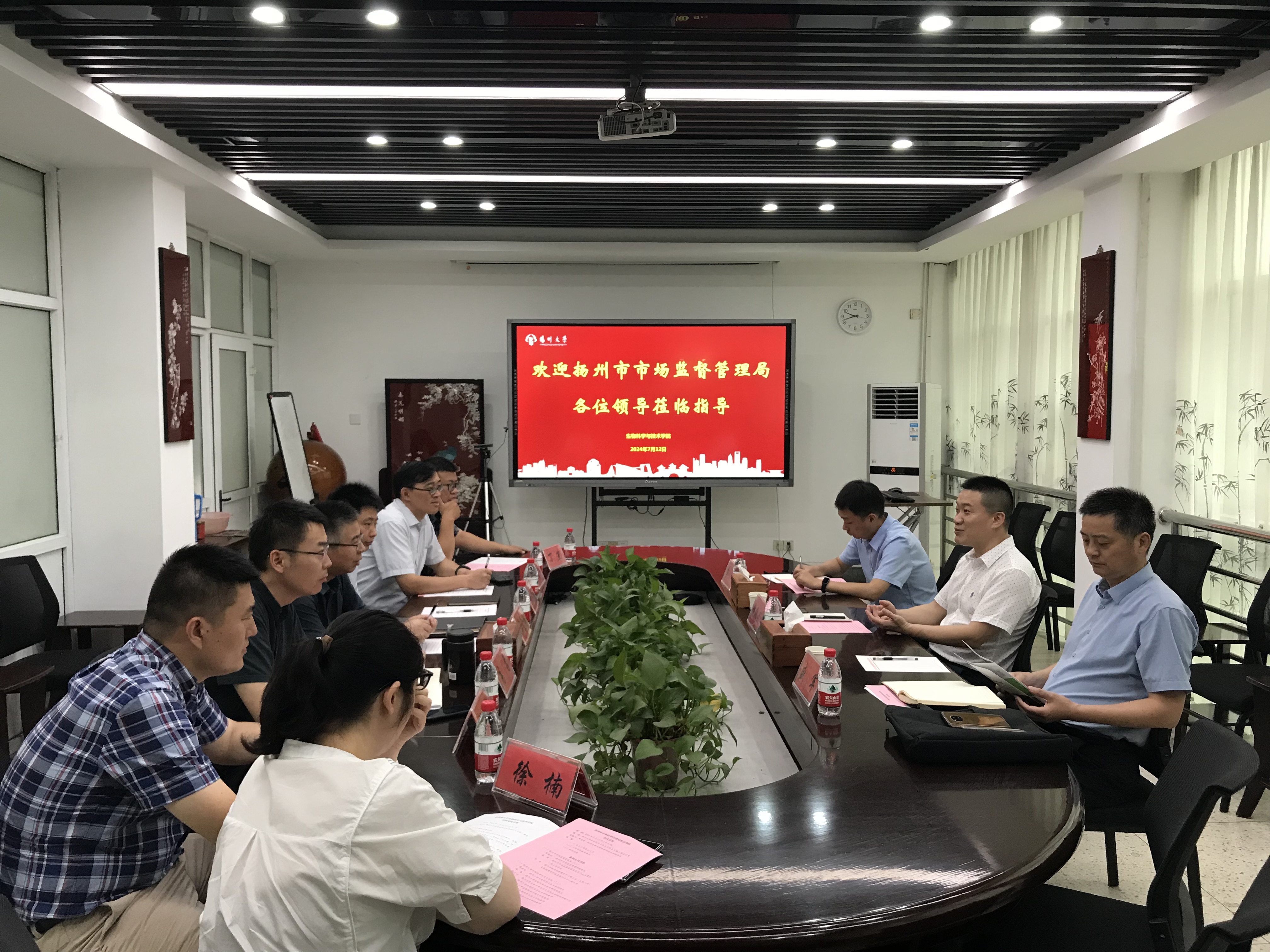 7月12日上午,扬州市市场监督管理局副局长张敬武、医药产业发展处一级主任科员盛军、扬州市医药创新服务中心副主任李奇,来我院考察交流。我院黄金林院长、高勇副院长参加交流会。