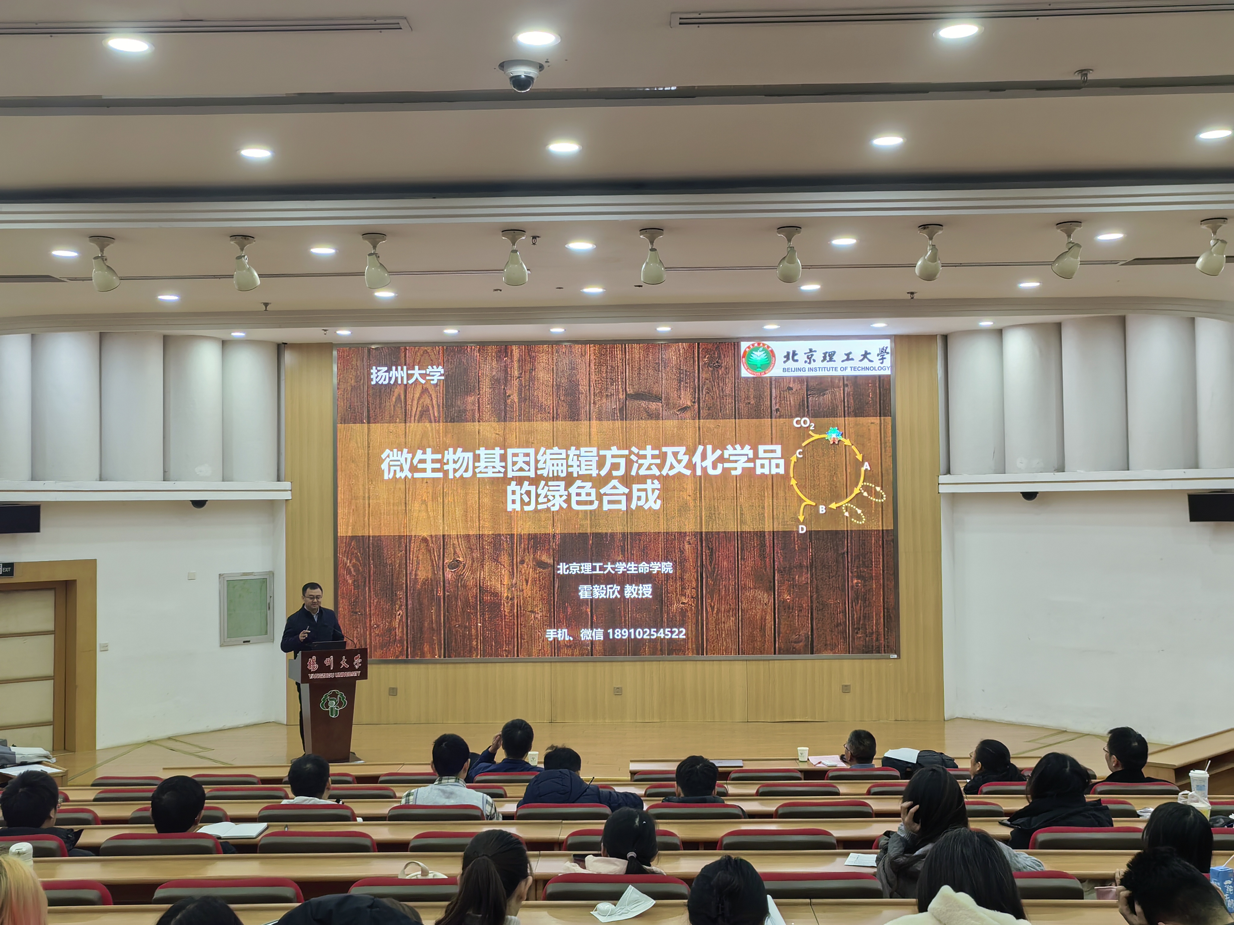 霍毅欣教授以“微生物基因编辑方法及化学品的绿色合成”为题,讲解了耐盐肠道微生物的表型特征和系统进化分析,并建立了济州杆菌基因编辑的系统。随后,以化合品绿色合成的时代性为背景,通过葡萄糖为底物发酵生产异丁醇,介绍了化学品的绿色合成。