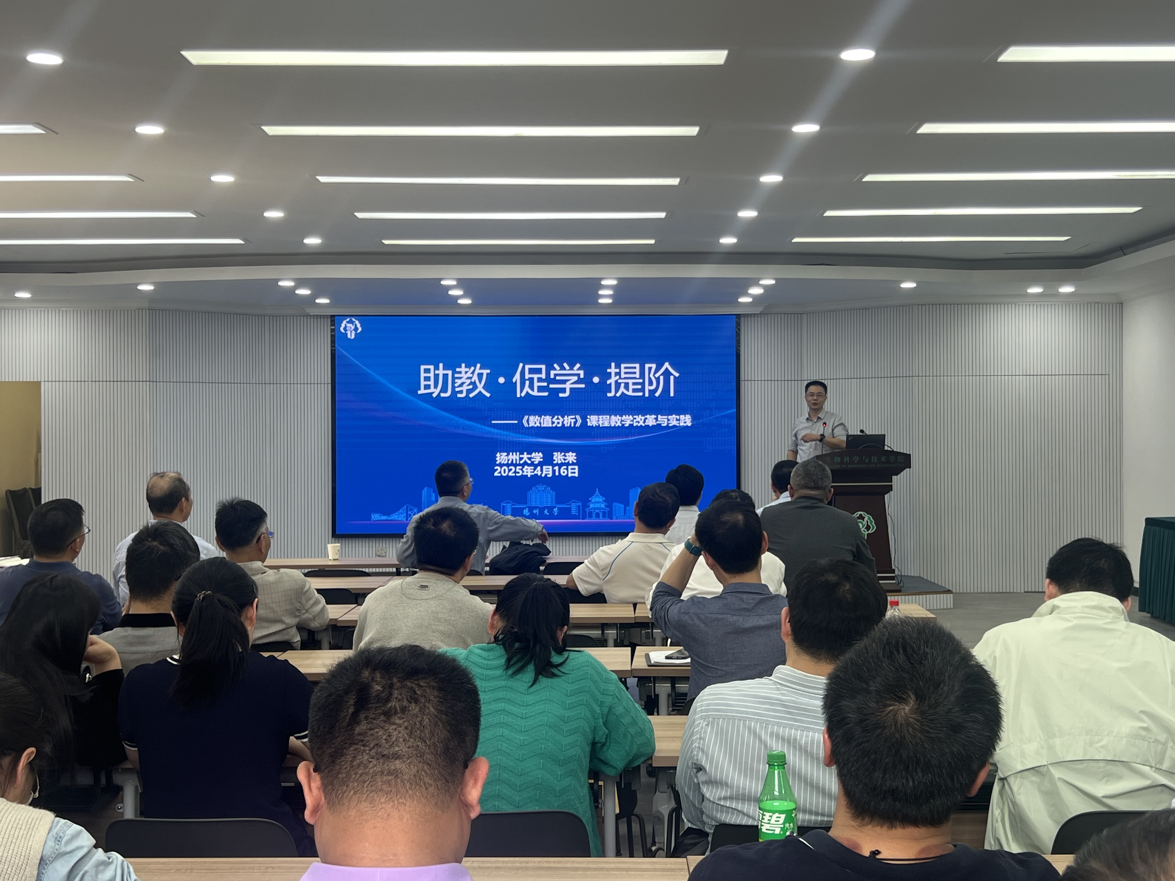 会议邀请了学校教务处张来副处长做报告,他从课程概况、痛点分析、创新思路、创新举措、成效推广、完成反馈六个方面对课程教学改革与实践做了详细梳理和解读。