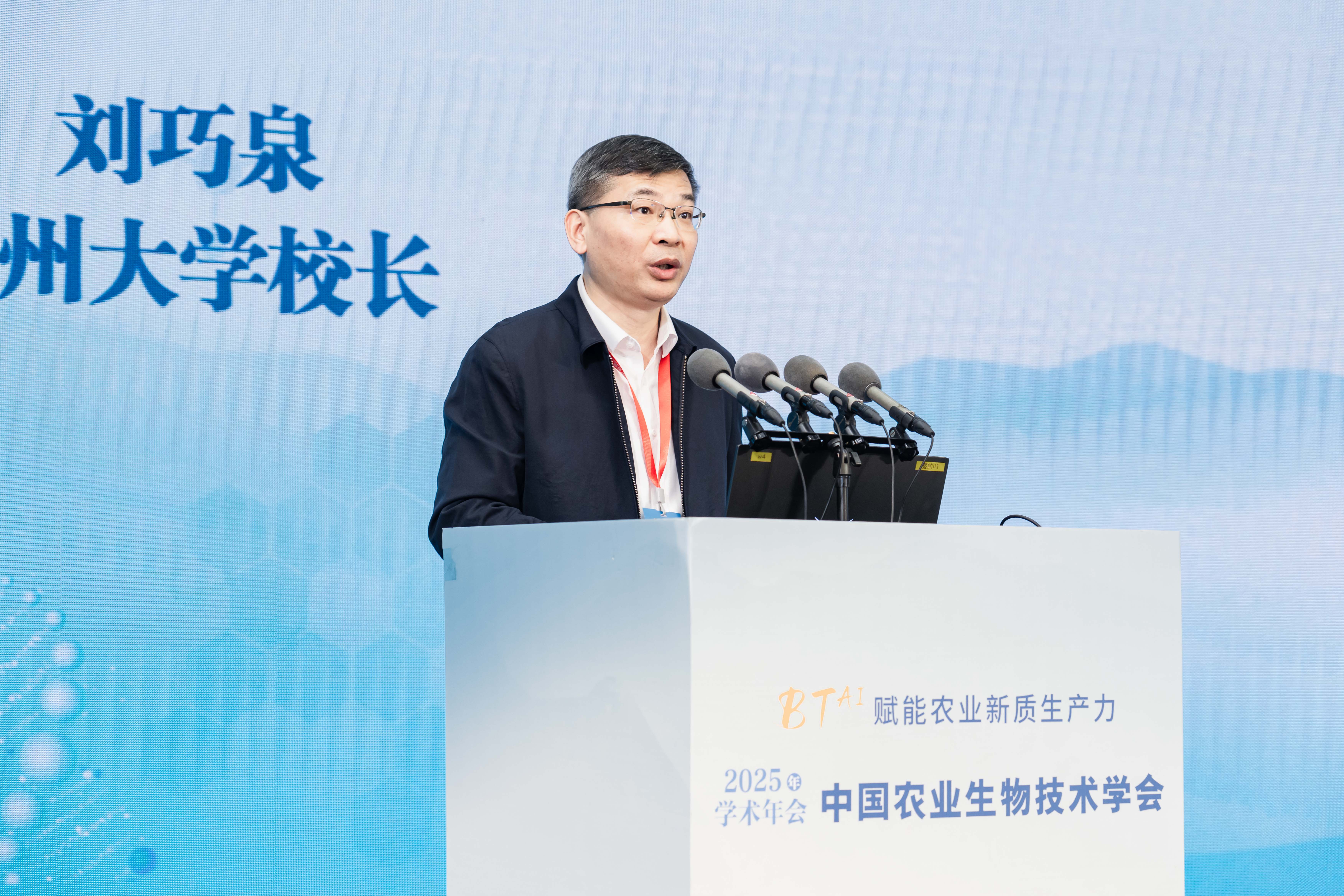刘巧泉简要介绍了扬州大学发展历史。他指出,面对前沿生物技术引发的种业变革,希望通过本次大会搭建高水平交流平台,推动生物技术从实验室迈向田间地头,为乡村振兴提供强劲的科技支撑。大会特邀邓子新、陈晓亚、朱健康、侯水生等四位院士及焦新安、吴珍芳等知名专家作大会主旨报告。院士专家们聚焦农业生物技术与人工智能融合、种质创新、合成生物学等前沿方向,为与会者带来了一场高水准的学术盛宴。