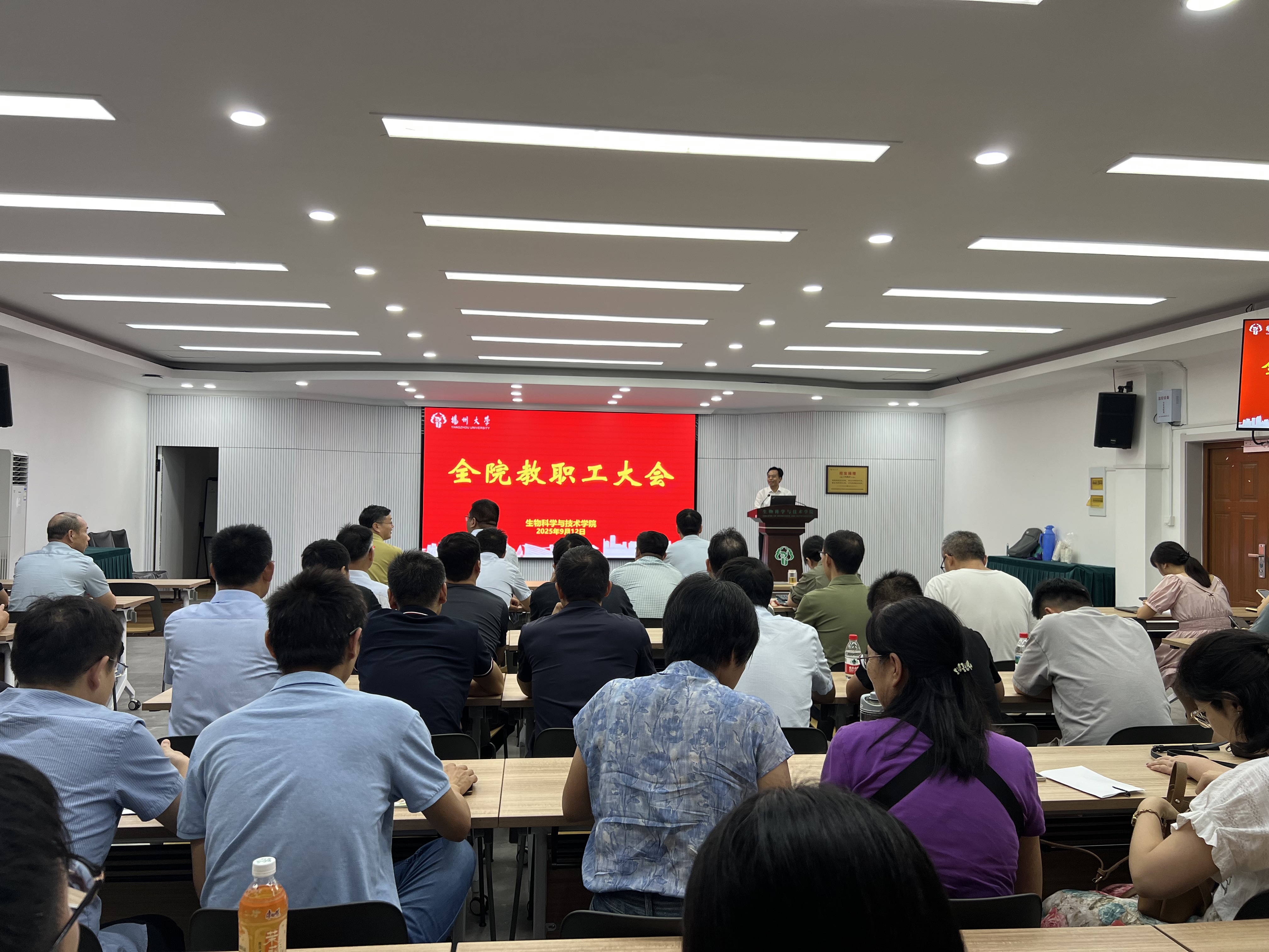 会上,其他院领导布置了相关工作。全院教职工参加了会议。