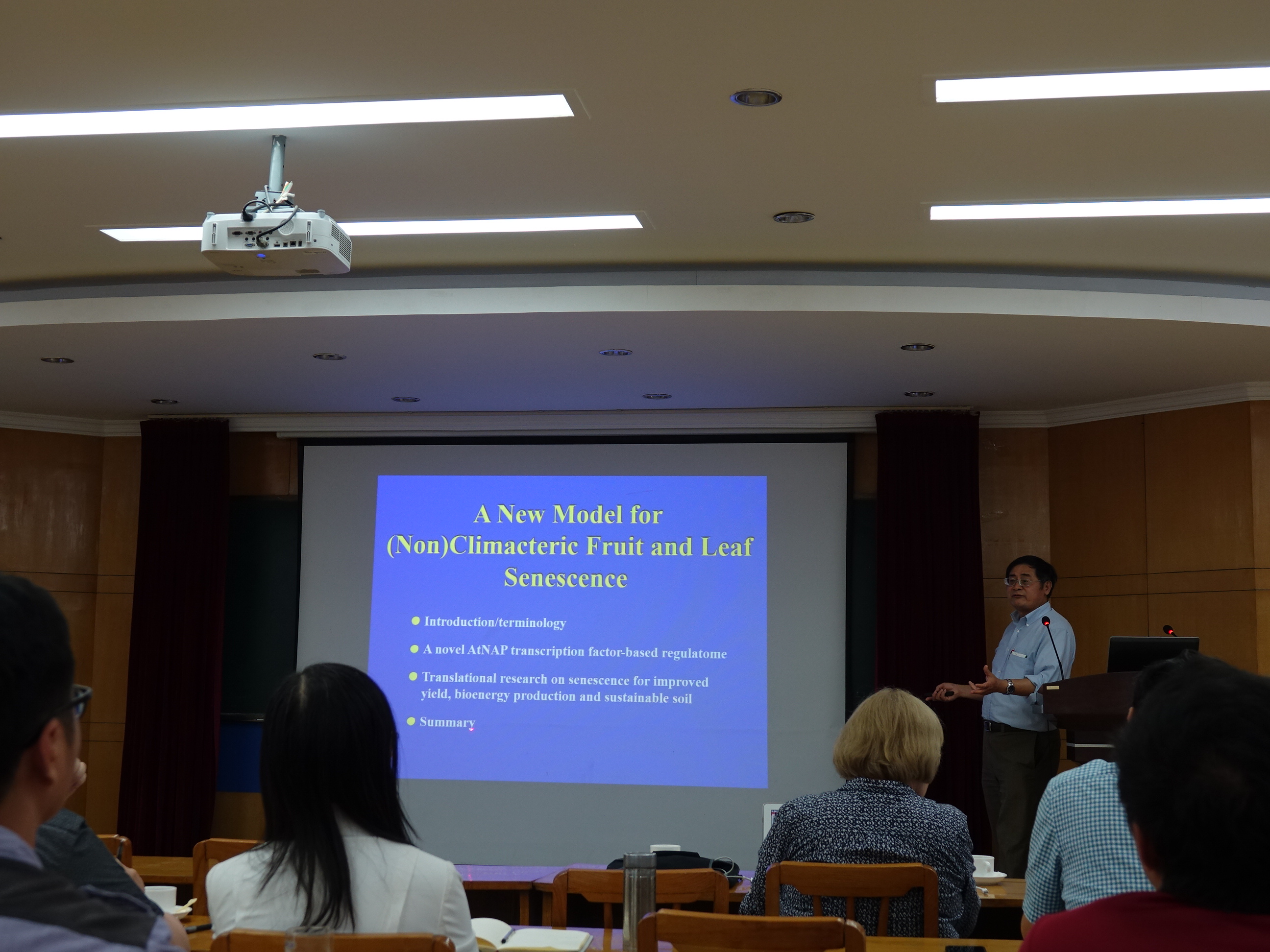 2018年6月11号下午,我院邀请了3位专家来我院开展学术报告。James A. Birchler教授就职于美国密苏里大学,任美国科学院院士,在植物人工染色体、玉米杂种优势、着丝粒功能、RNAi和基因剂量补偿等方面的研究处于领先地位,主讲的内容是The Gene Balance Hypothesis: How gene stoichiometries affect expression, the phenotype and evolutionary processes。Kathleen J. Newton教授现就职于美国密苏里大学,主要从事线粒体基因组学、线粒体突变对植物生长发育的影响、细胞质雄性不育、杂种优势的理论和应用研究,主讲的内容是Maize mitochondrial genomes: Rearrangement mutations and cytoplasmic male sterility。甘苏生教授就职于美国康奈尔大学,国际知名的植物衰老机制研究专家,主要研究领域为植物叶片黄化和衰老过程中的分子调节机制。主讲的内容是A new model for climacteric and nonclimacteric fruit and leaf senescence。专家们带来的不仅是国际前沿的学术知识,更让我们对实证研究有了更加清晰的认识。报告后,老师研究生积极提问,与专家互动交流。