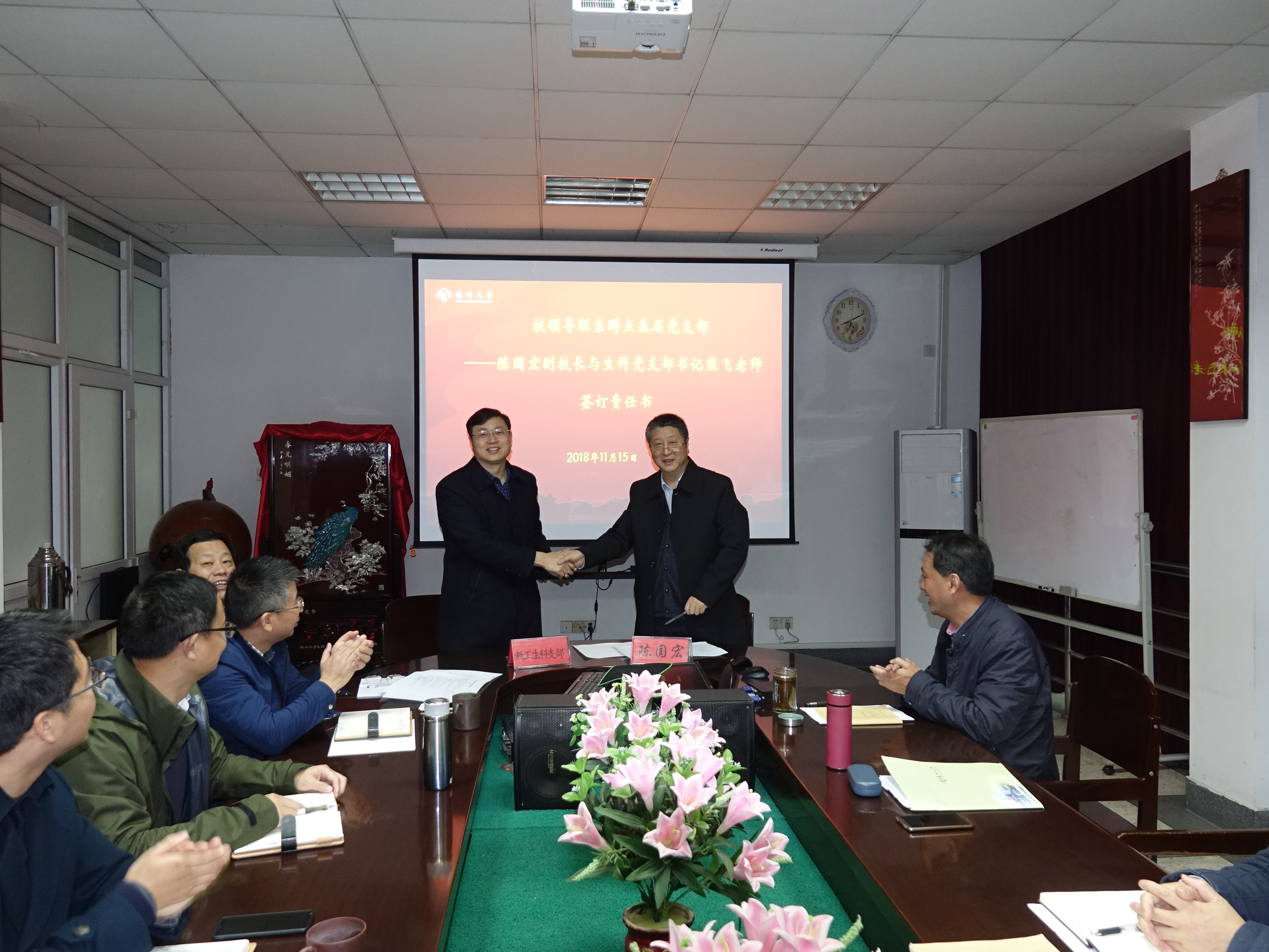 会上,陈校长与其联系的教工生科党支部书记、优秀党外青年教师签订了校领导班子成员蹲点联系基层党支部和优秀青年教师责任书,并听取了支部书记和青年教师的汇报。与会人员表示将继续学习全国教育大会精神和宣传思想工作会议精神,为学院和学校发展贡献力量。