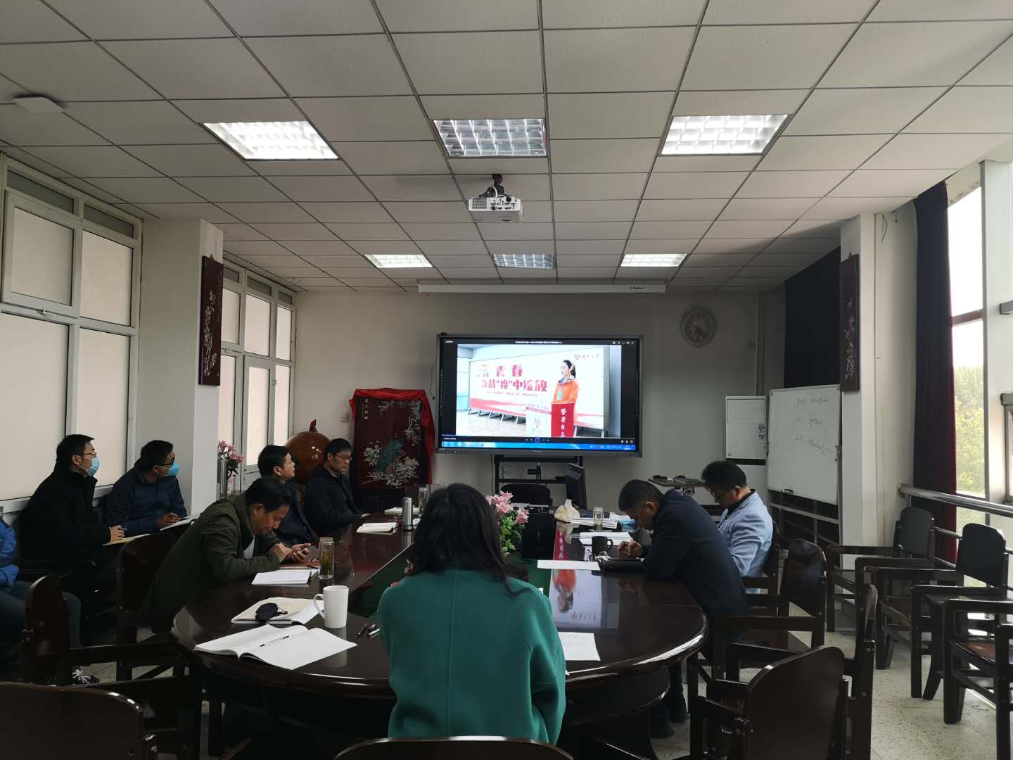 会上,中心组成员共同观看、学习了校附属医院支援抗疫一线优秀人员事迹报告会专题视频——《青春在战“疫”中绽放》。