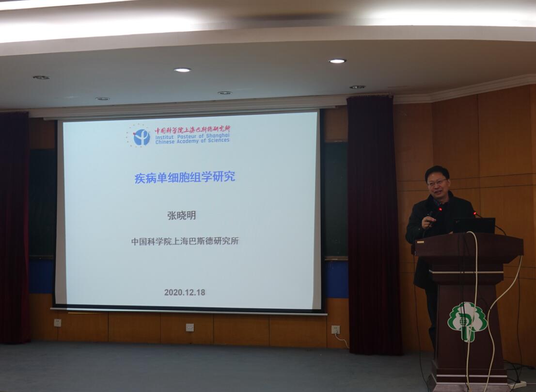 2020年12月18日上午,中科院上海巴斯德研究所张晓明研究员应邀来我院做学术报告和交流,会议由黄金林院长主持。