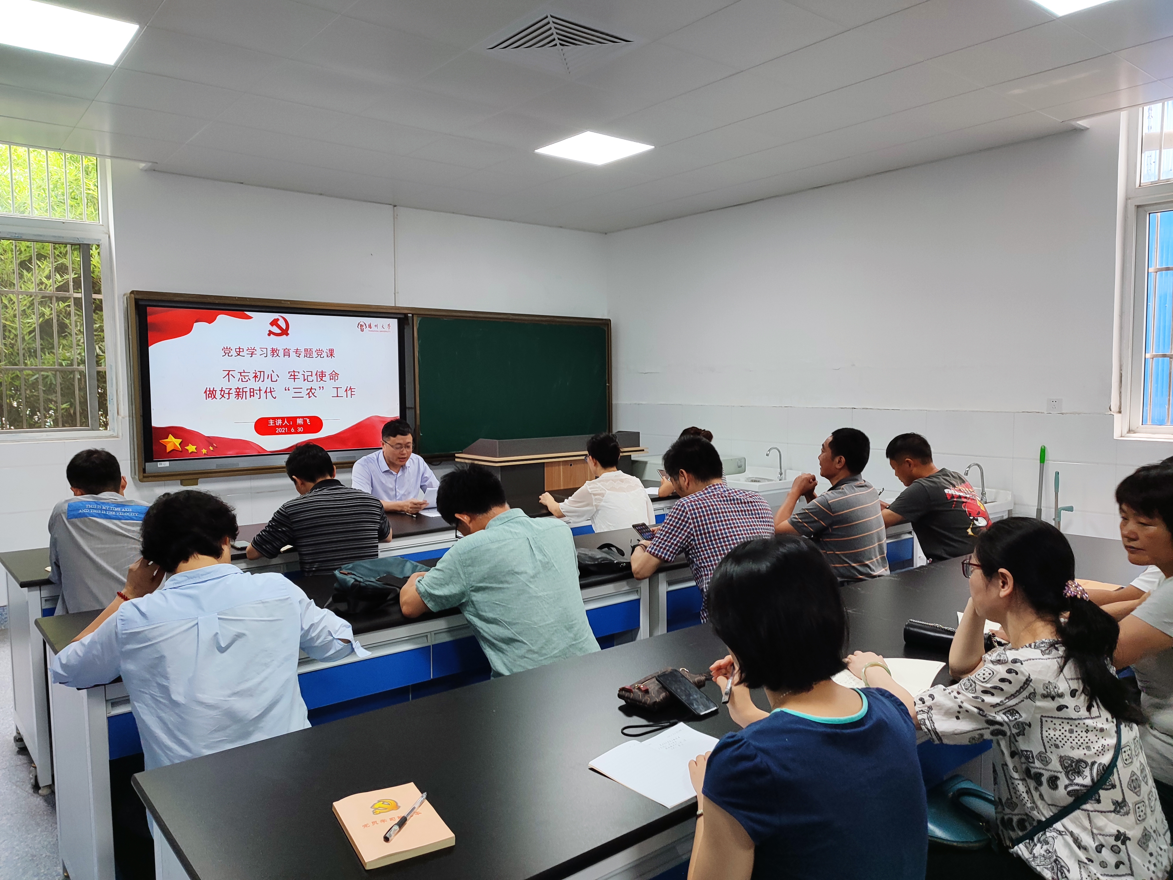 会上,熊飞书记以“不忘初心、牢记使命、做好新时代“三农”工作”为题,为支部、系部全体老师上了一堂党史学习教育专题党课。熊飞指出“三农”工作是促进农业高质高效、乡村宜居宜业、农民富裕富足的重要抓手,是全面建成小康社会、实现社会主义现代化国家建设的重要组成部分,我们要充分认识到“三农”工作的重要性,发挥自身专业优势,积极为国家乡村振兴贡献力量。杨凤萍副书记带领各位党员学习了《中国共产党简史》第六章:社会主义建设的探索与曲折发展、第七章:伟大历史转折和中国特色社会主义的开创。支部支委领学了《论中国共产党历史》中“中国革命历史是最好的营养剂”、“讲好中国共产党的故事”、“革命精神是党和国家的宝贵财富”等学习内容。