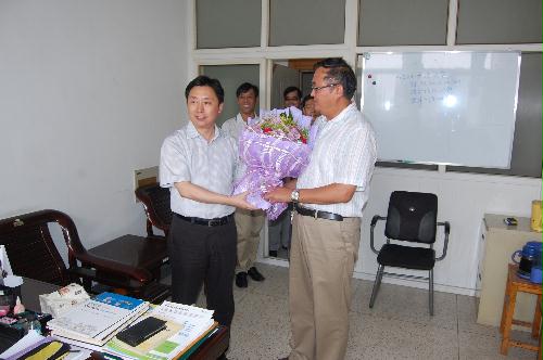 9月9日上午,在全国第30个教师节来临之际,校党委书记夏锦文教授亲切看望省优秀教育工作者陈建民教授。在陈建民教授工作室,夏书记向陈建民教授表示祝贺,并表达节日的慰问。夏书记询问了陈建民教授在教学、科研等方面的情况,同时询问了陈建民老师对学校工作的建议与要求。陈建民教授表示,感谢学校的培养和领导的关心,获得省优秀教育工作者,倍感压力,表示一定会珍惜荣誉,尽职尽力完成教学和科研工作,努力培养科研梯队,带好学术团队。党办主任周建超,学院孙云寿书记、魏万红院长陪同看望。