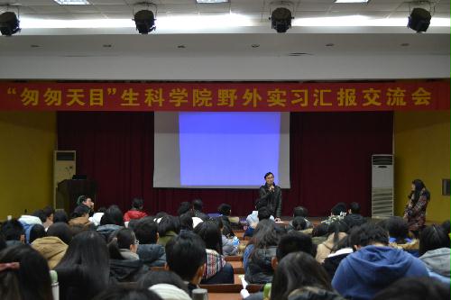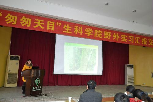 12月12日下午,我院在文汇路校区科技报告厅举行了“匆匆天目--野外实习报告交流会”。副院长周福才、院金银根、熊飞、杨凤萍、骆乐等老师听取汇报成果。院团委书记杨晶主持了此次报告会。