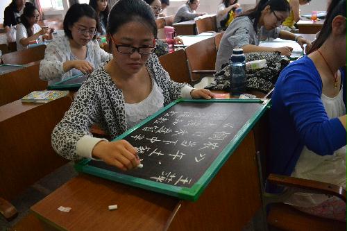 5月19日上午,我院首届师范生技能大赛拉开帷幕。此次比赛共有粉笔字书写、钢笔字书写、即兴演讲等多个环节。生科1201班、生科1401班全体同学参加了本次比赛。