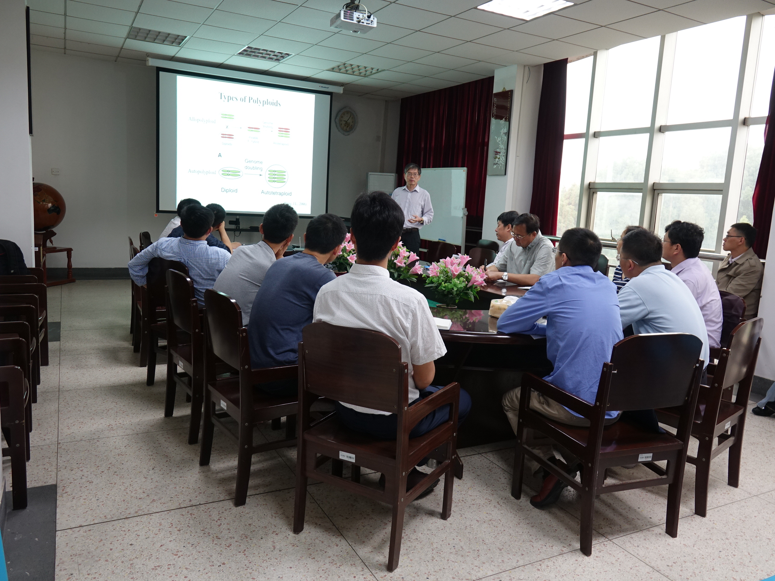 2018年5月28号上午,加拿大圣玛丽大学的Genlou Sun教授和南京农业大学的熊爱生教授应邀来我院开展学术交流。Genlou Sun教授是国际知名的植物遗传学家,长期从事植物细胞遗传学、分子遗传学、分子生物学及功能基因组研究及教学工作。Sun教授主讲的题目microRNAs: Potential as Targets for Crop Improvement。熊爱生教授现就职于南京农业大学作物遗传与种质创新国家重点实验室。熊教授讲座主要介绍了基因合成和体外定向分子进化技术在园艺作物改良中的应用。报告后,老师同学们积极提问,两位专家一一解答。