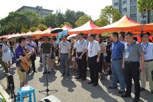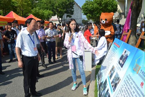 焦新安校长对我院迎新现场的野外实习宣传、动植物标本展示、英国访学交流讲解、 “未来科学家”的合影展台等创意活动表示了充分肯定。焦新安饶有兴趣地观看了学生代表的吉它才艺展示,频频点头表示赞许,并表示,要培养人文气息与专业水平兼容的生命科学人才。焦校长还与创新班的新生进行了交流,寄语他们努力学好专业知识,成为国家需要的创新型高端人才。