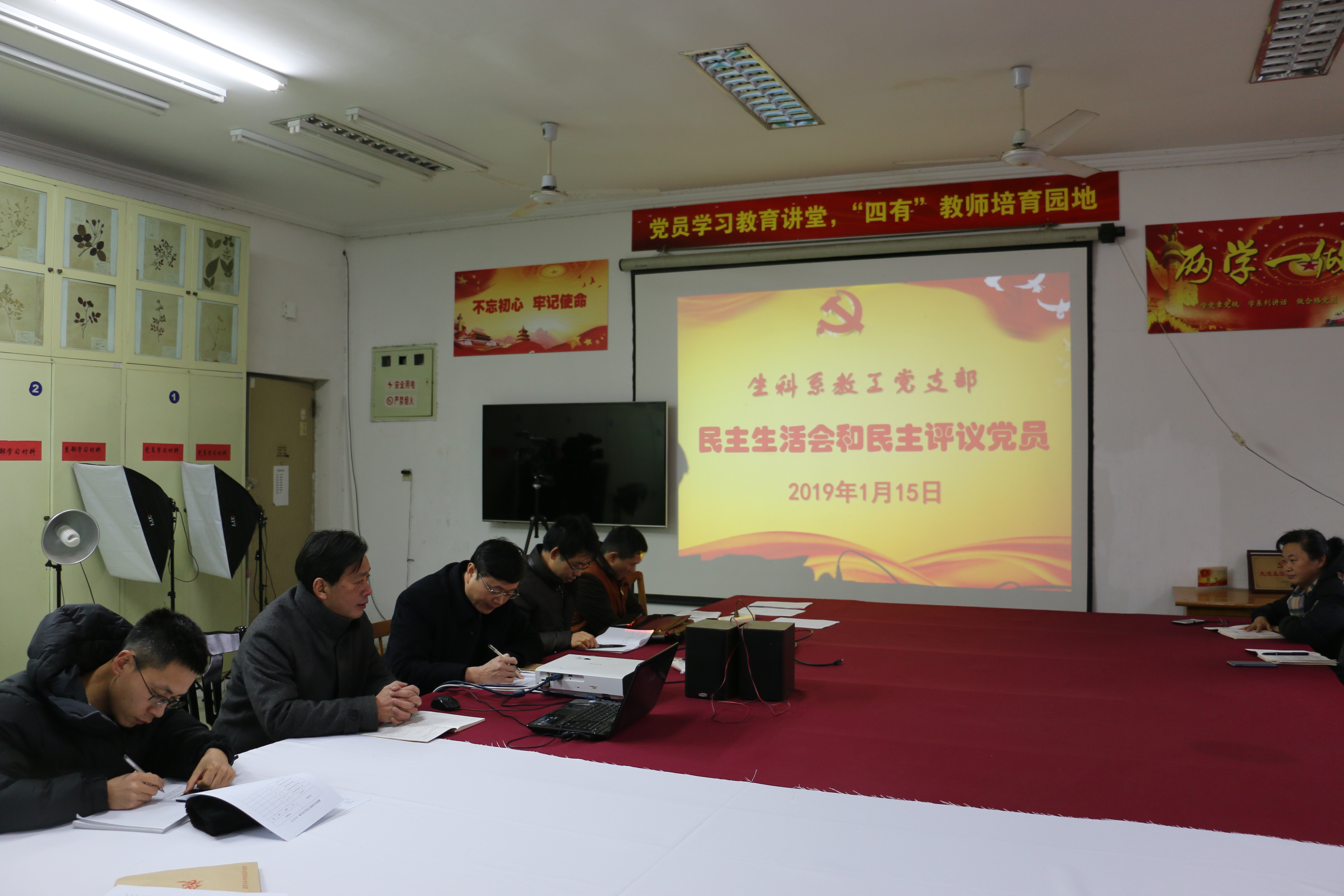 1月15日下午,教工生科党支部在26号楼222会议室召开组织生活会并进行民主评议党员。会议由支部书记熊飞主持,支部联系院领导、院党委书记夏泽清参加组织生活会,并开展了批评与自我批评,支部全体成员参加此次组织生活会。