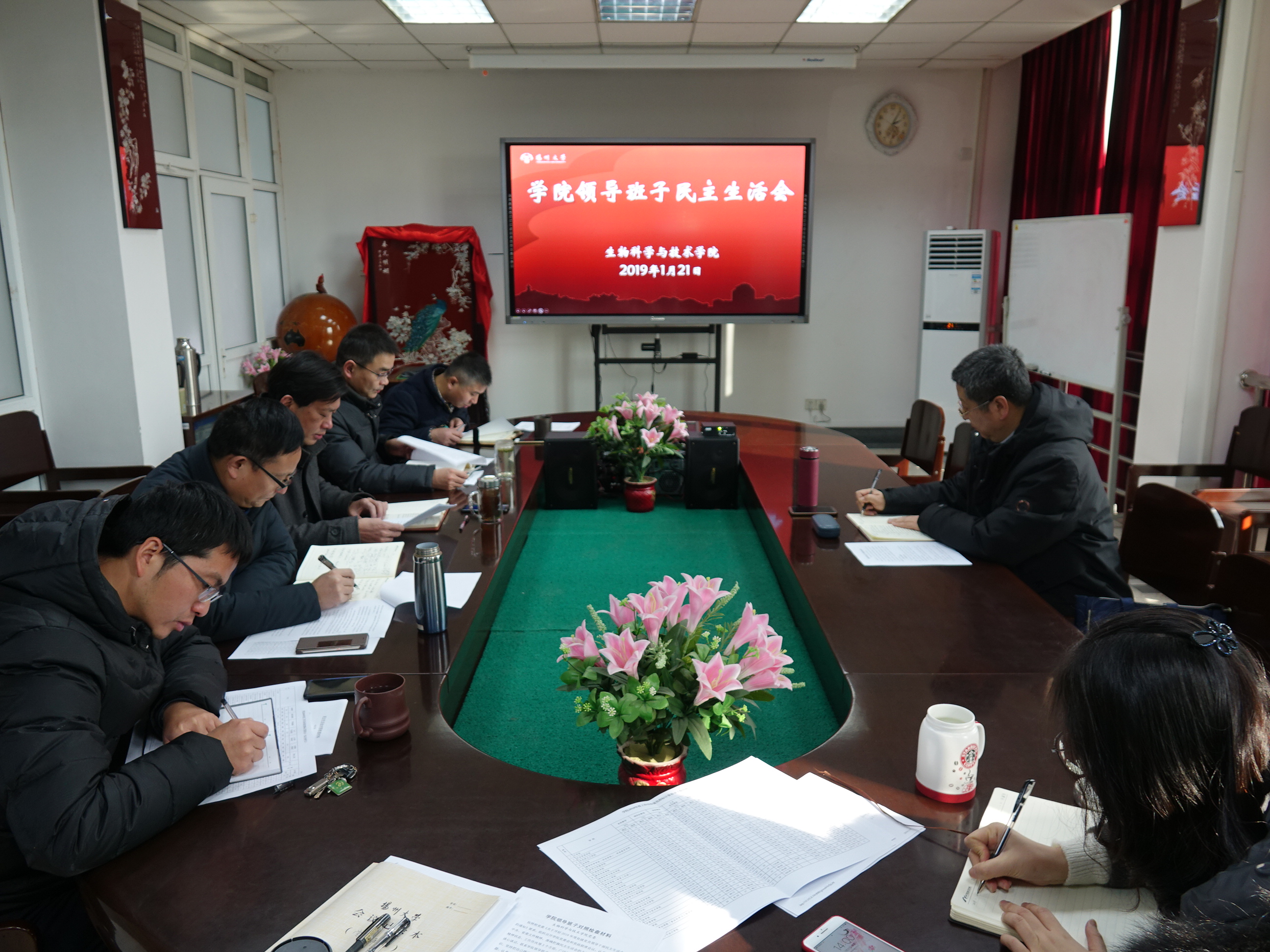 2019年1月21日下午2:00,学院领导班子在学院三楼会议室召开2018年度的民主生活会。校党委常委、副校长陈国宏参加会议并进行了点评,会议由院党委书记夏泽清主持,全体院领导参加会议,办公室正副主任列席会议。