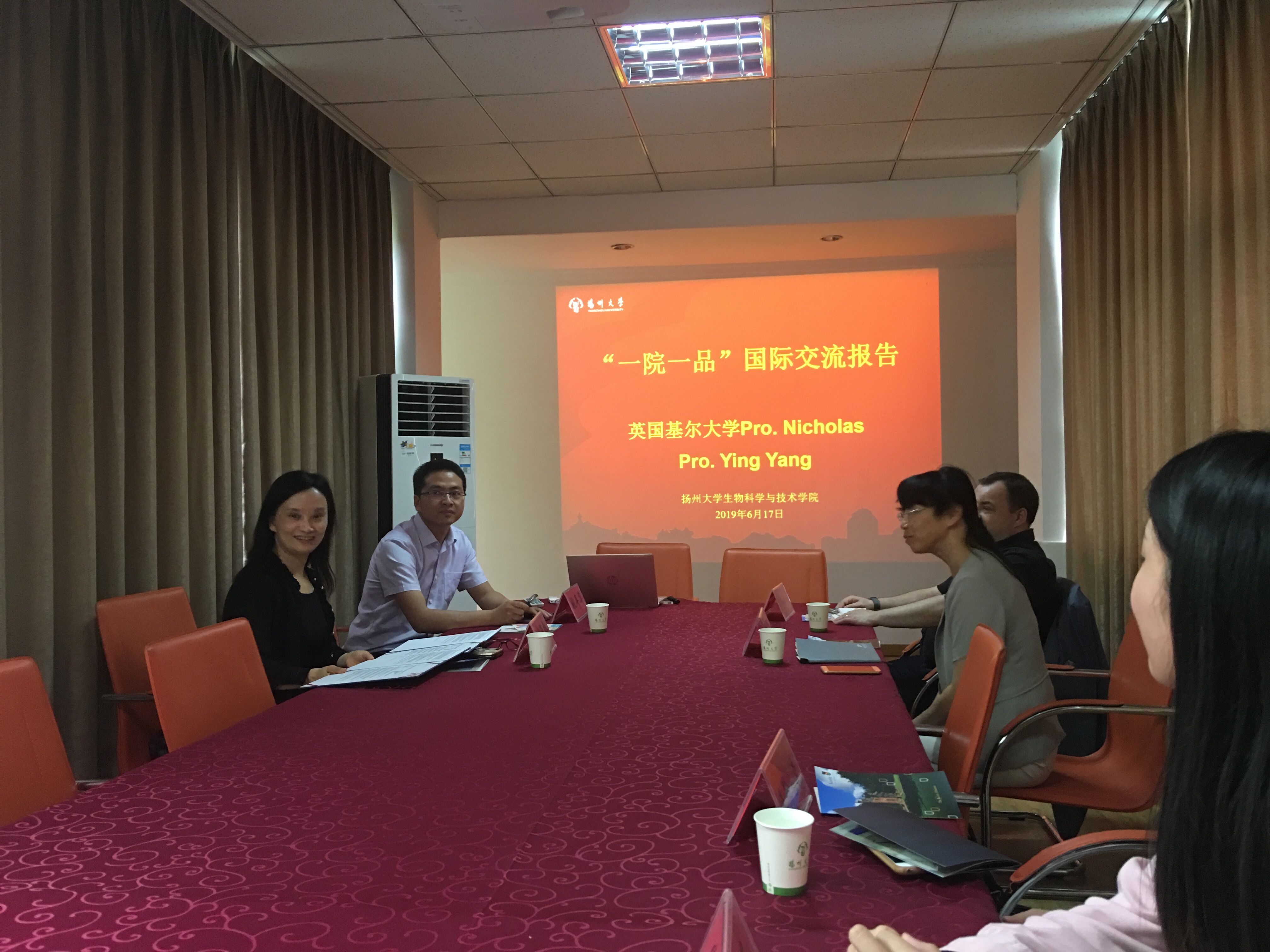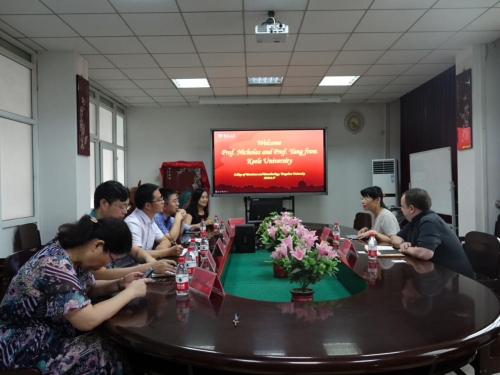 英国基尔大学Nicholas教授一行来院访问并作“一院一品”国际交流报告 6月17日,英国基尔大学医学及健康学部科研部长Nicholas R. Forsyth、基尔大学医学科学与技术学院Yang Ying 教授一行访问我院。黄金林副院长、姚丰华副书记会见了来宾,院国际交流与合作办公室、生物技术系、生物科学系、团委(学工办)负责同志及部分教师参加了座谈。