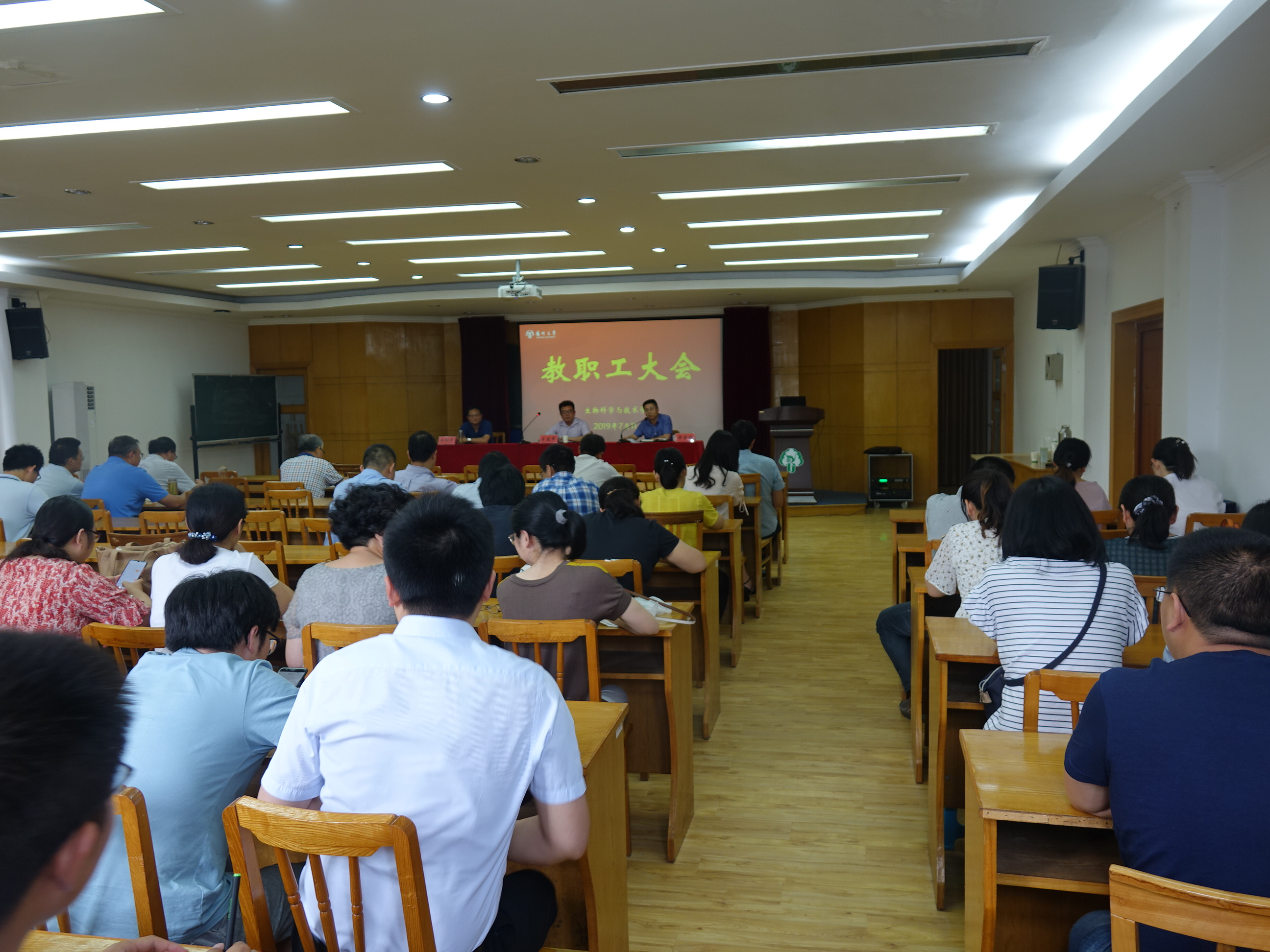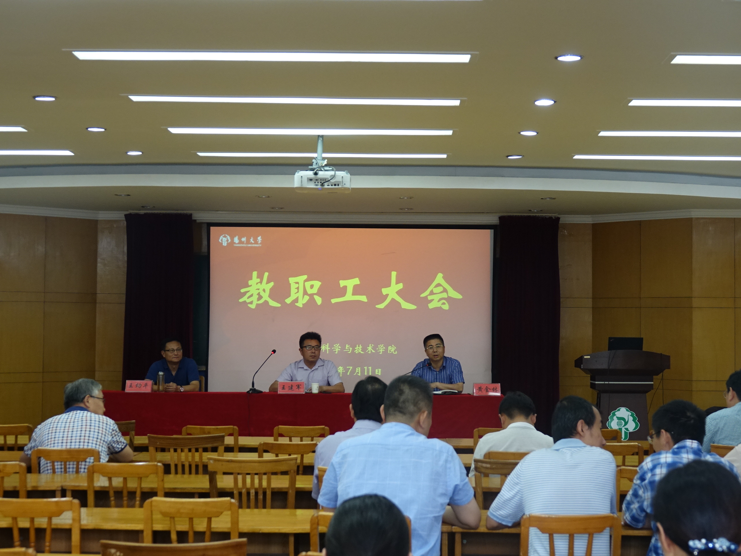 7月11日下午,学院在院二楼报告厅召开教职工大会,部署暑期重点工作。院党委王建军书记、黄金林院长、王幼平副院长,以及全体教职工参加了此次会议。会议由黄金林院长主持。?xml:namespace>