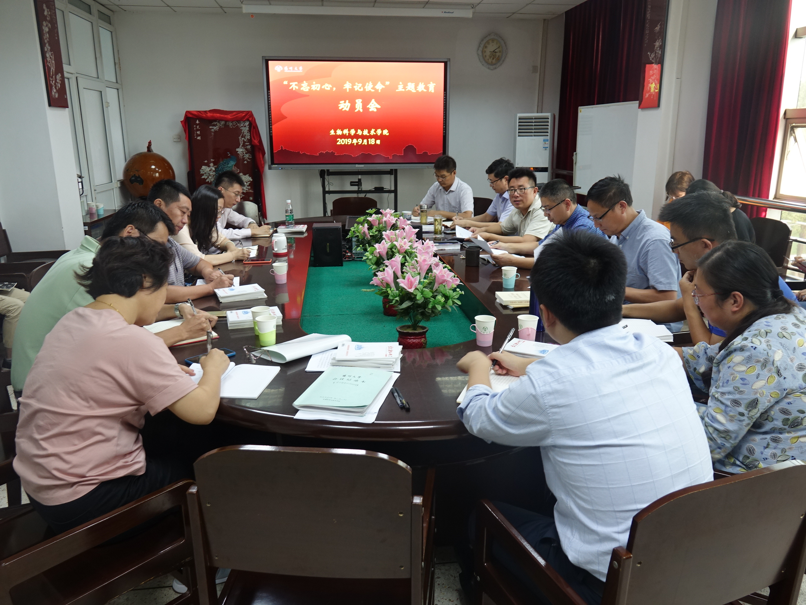 9月18日下午,学院在院三楼会议室召开“不忘初心、牢记使命”主题教育动员会。院党委书记王建军主持会议并做主题教育动员,学院领导、科级干部、党支部书记和支委、系主任、中心主任、工会主席、团委书记等同志参加动员会。