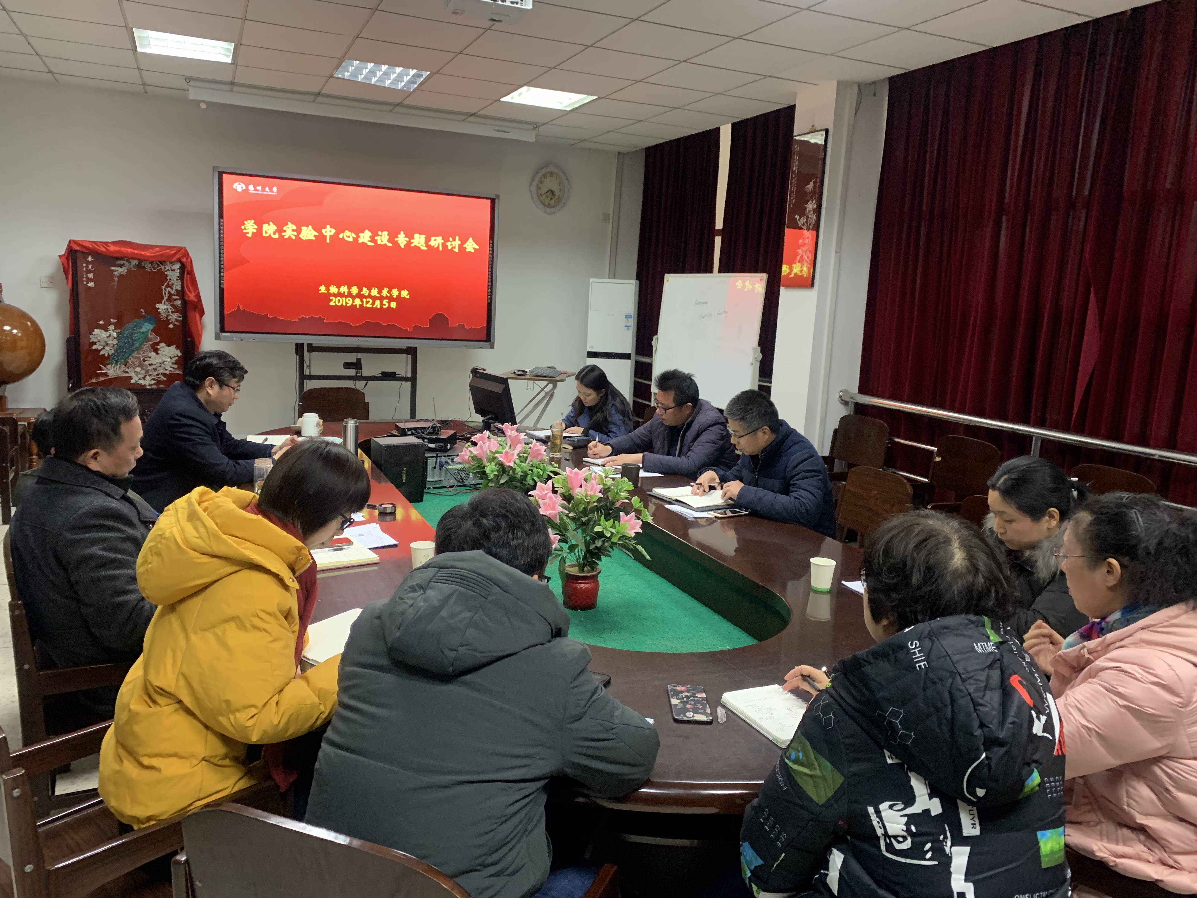 2019年12月5日下午,学院在三楼会议室召开实验室建设专题研讨会。全体院领导、院实验中心全体成员、办公室负责同志参加了此次研讨。会议由熊飞副院长主持。