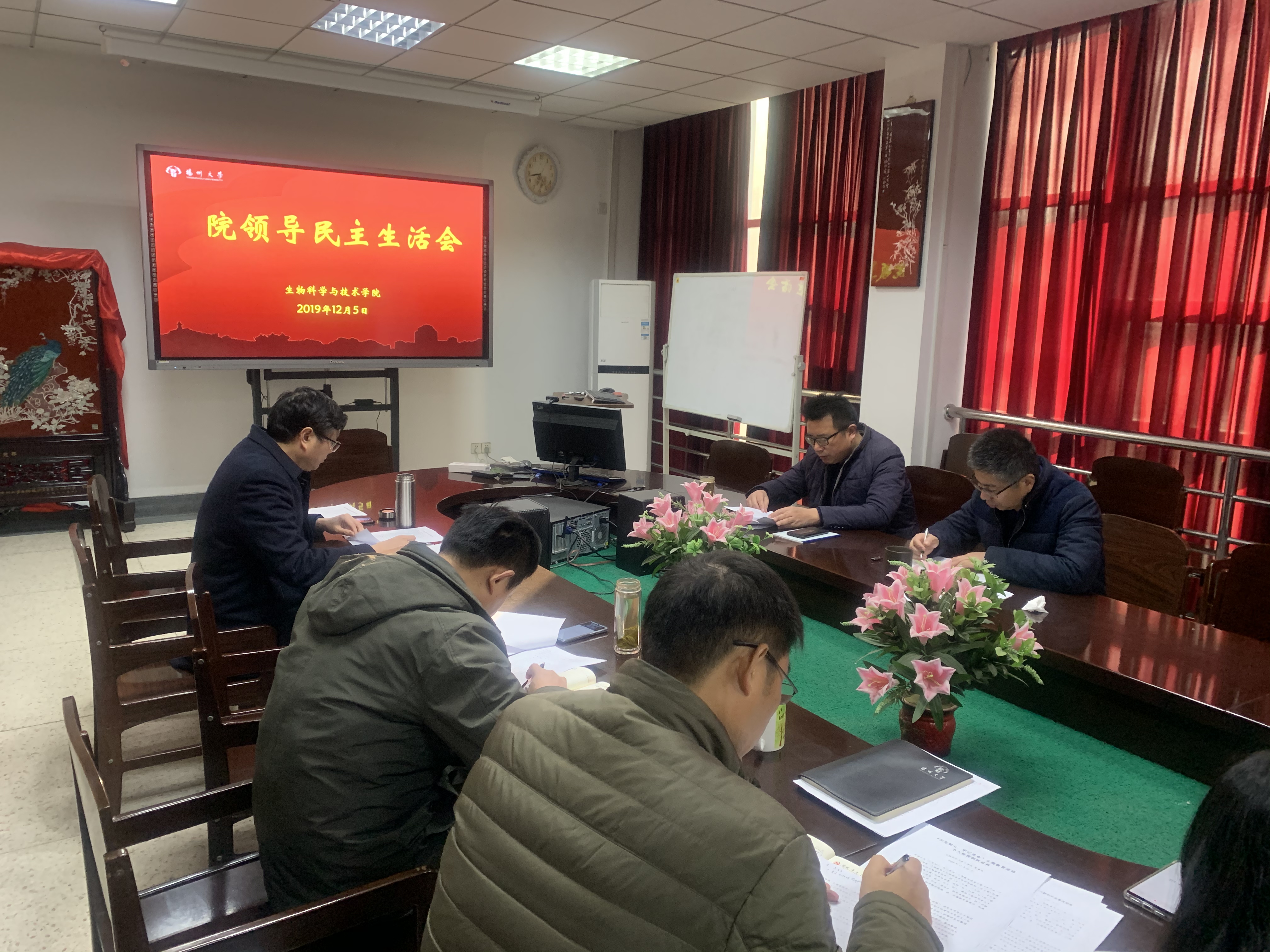 2019年12月5日上午8:30,院领导班子在学院三楼会议室召开2019年度的民主生活会。会议由院党委书记王建军主持。