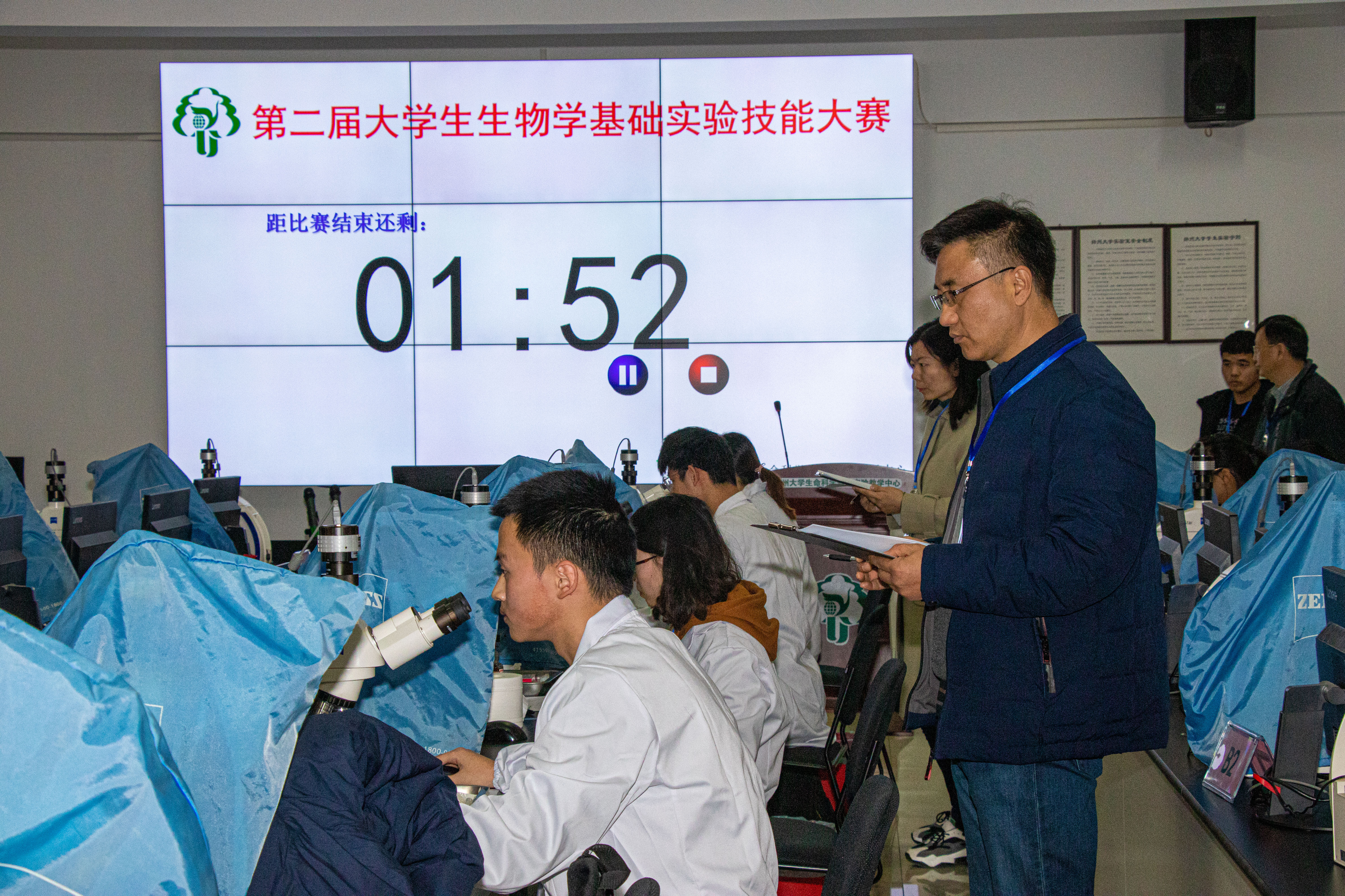 扬州大学第二届大学生生物学基础实验技能大赛由实验室与设备管理处、教务处、校团委和生物科学与技术学院共同主办,生命科学基础实验教学中心和生物科学与技术学院团委承办。本次大赛共分为两个阶段,第一阶段为基础技能测评,第二阶段为综合能力测评,包括实验设计、知识竞答、实验仪器设备讲解三个环节。第二阶段的比赛和颁奖仪式将于12月13日在荷花池校区逸夫图书馆报告厅举行。