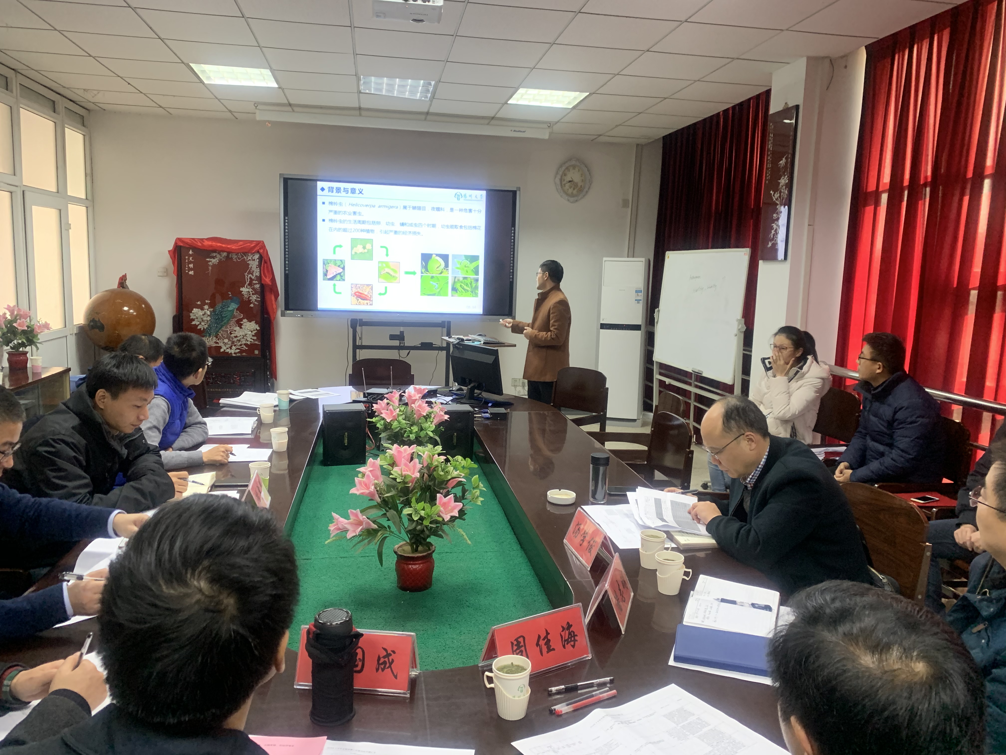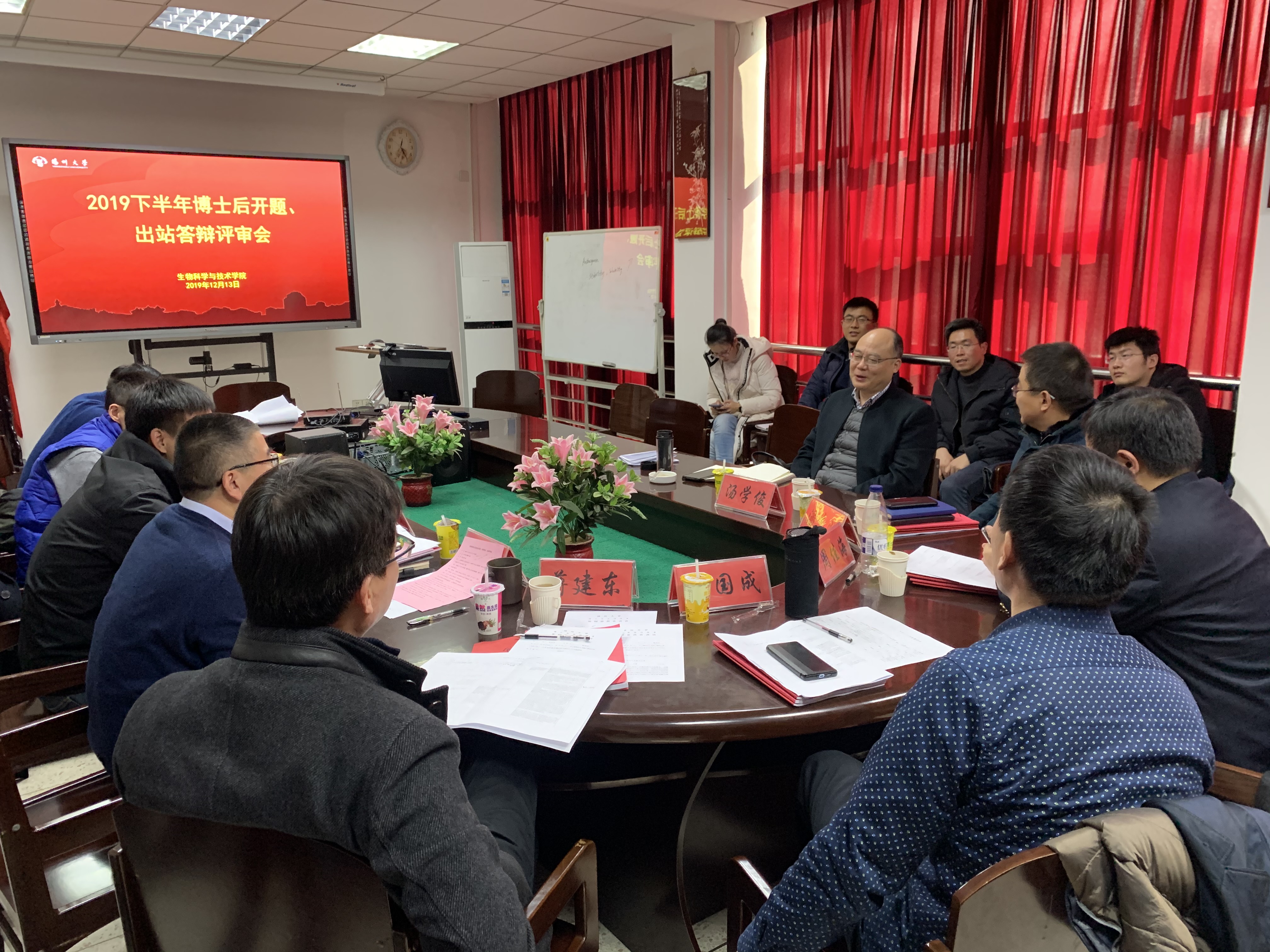 生物学博士后流动成功举办2019年下半年开题、出站答辩评审会12月13日,学院在三楼会议室举办生物学博士后流动站开题、出站答辩评审会,程阳等11位新进站博士后进行了开题报告,顾丹、张龙、方玉洁3位在站博士后进行了出站答辩汇报。江南大学堵国成教授、中科院上海有机所周佳海研究员、南京农业大学生命科学学院蒋建东教授、扬州大学科技处潘志明教授、扬州大学生物科学与技术学院黄金林教授担任了此次评委,人事处汤学俊副处长、博士后管理办公室陈宗春老师应邀参加会议。堵国成教授担任此次开题审查小组组长和出站答辩委员会主席,生物学博士后流动站全体博士后参与了聆听学习.