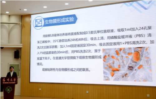 比赛的第一环节要求选手们对实验设计方案进行现场答辩,内容包括研究背景、实验材料与方法及预期结果。过程中,参赛选手们对评委们的提问用通俗易懂的语言给出准确的回答,赢得了评委们的肯定和同学们热烈的掌声。