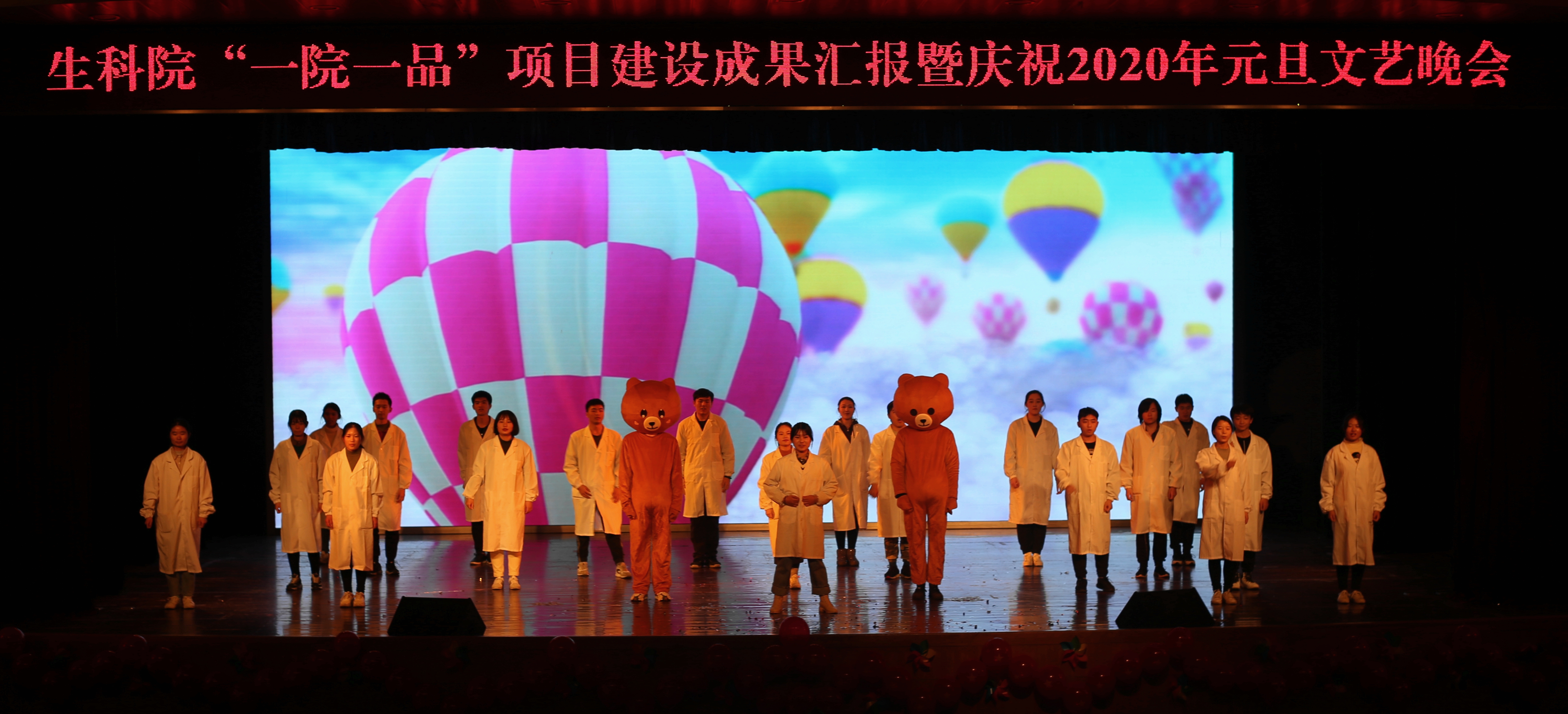 我院举办“一院一品”项目建设成果汇报暨庆祝2020年元旦文艺晚会12月21日晚,我院“一院一品”项目建设成果汇报暨庆祝2020年元旦文艺晚会,在荷花池校区大学生活动中心三楼小剧场隆重举行。院党委书记王建军、院长黄金林、副院长熊飞和院党委副书记廖善光出席活动。