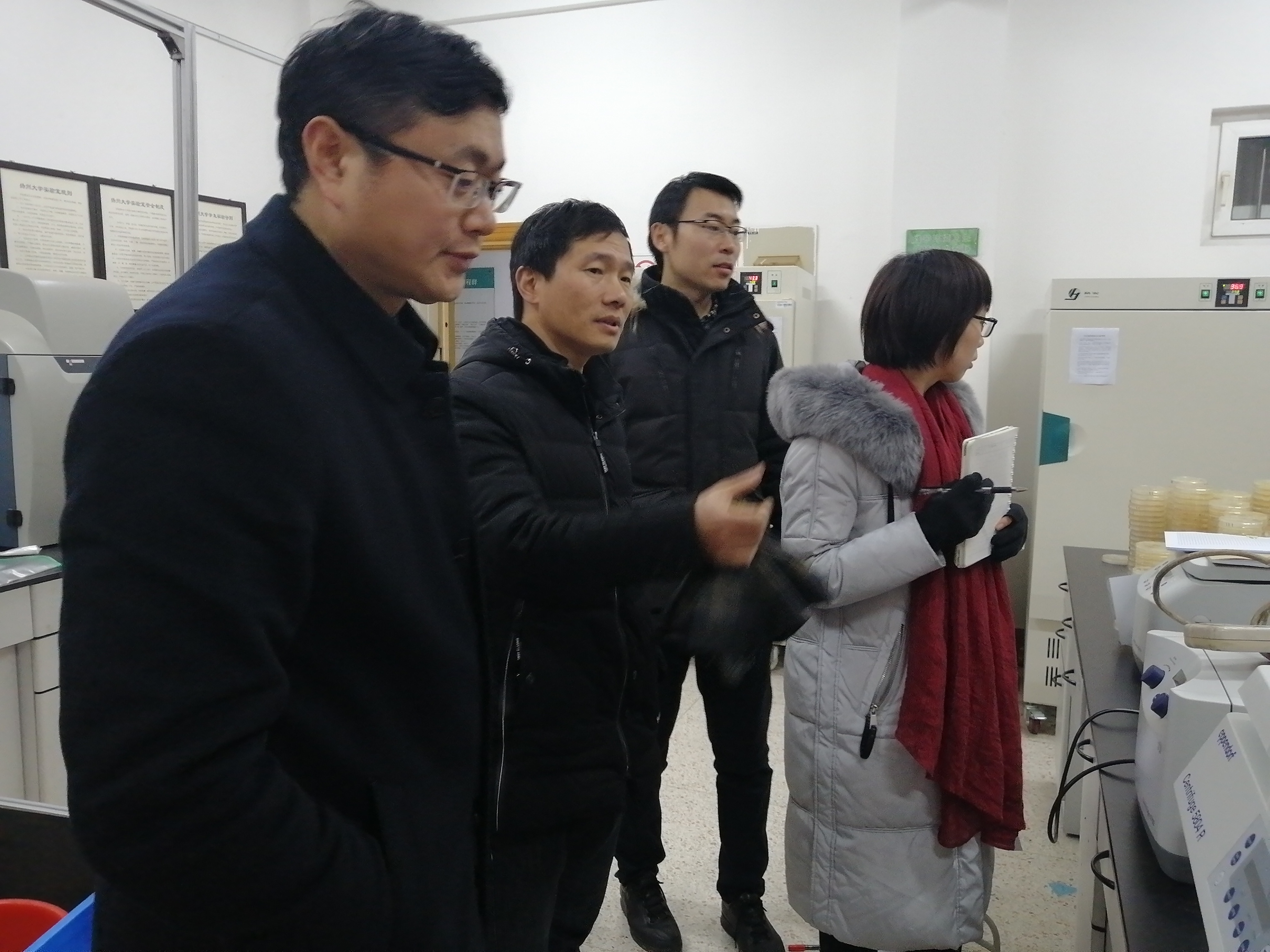 寒假将至,为进一步做好实验室安全工作,提高学院安全管理水平,2020年1月10号下午,熊飞副院长、王幼平副院长、各系部主任和实验中心老师到教学、科研实验室进行放假前安全大检查。重点检查各实验室安全管理、仪器设备使用情况,排查实验室区域安全隐患,对检查中发现的隐患和不足进行了提醒并提出整改意见,确保假期期间实验室工作的顺利进行。