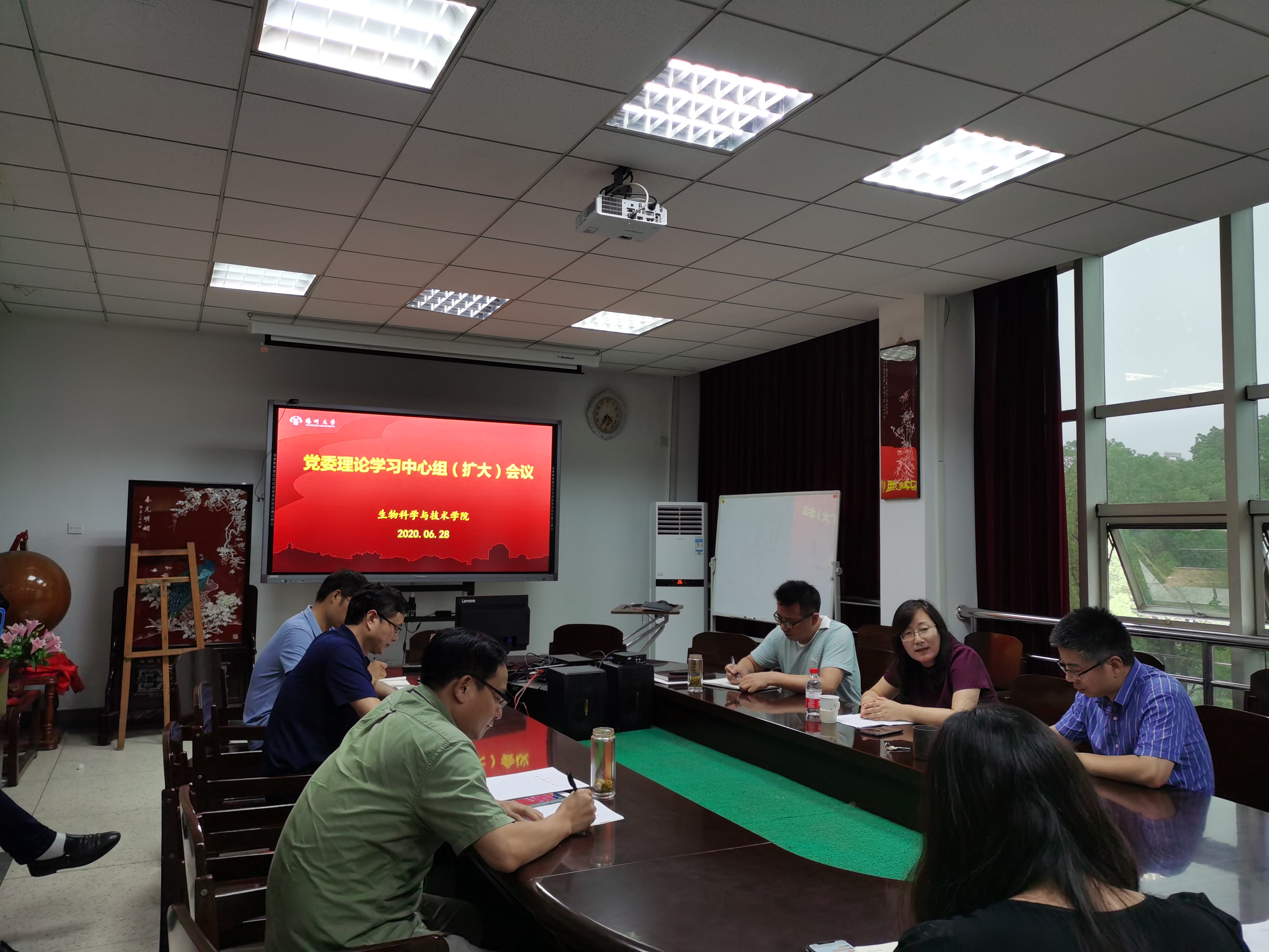 王建军书记和黄金林院长作领学发言。王建军介绍了《关于加快构建高校思想政治工作体系的意见》的重要意义,强调要发挥“三全育人”的积极作用,要求与会人员要围绕文件精神,逐条落实,并在下半年学院党政工作要点中体现。黄金林院长结合政府工作报告布置下一阶段工作,要求科学谋划“十四五”,统筹推进学院事业高质量发展。