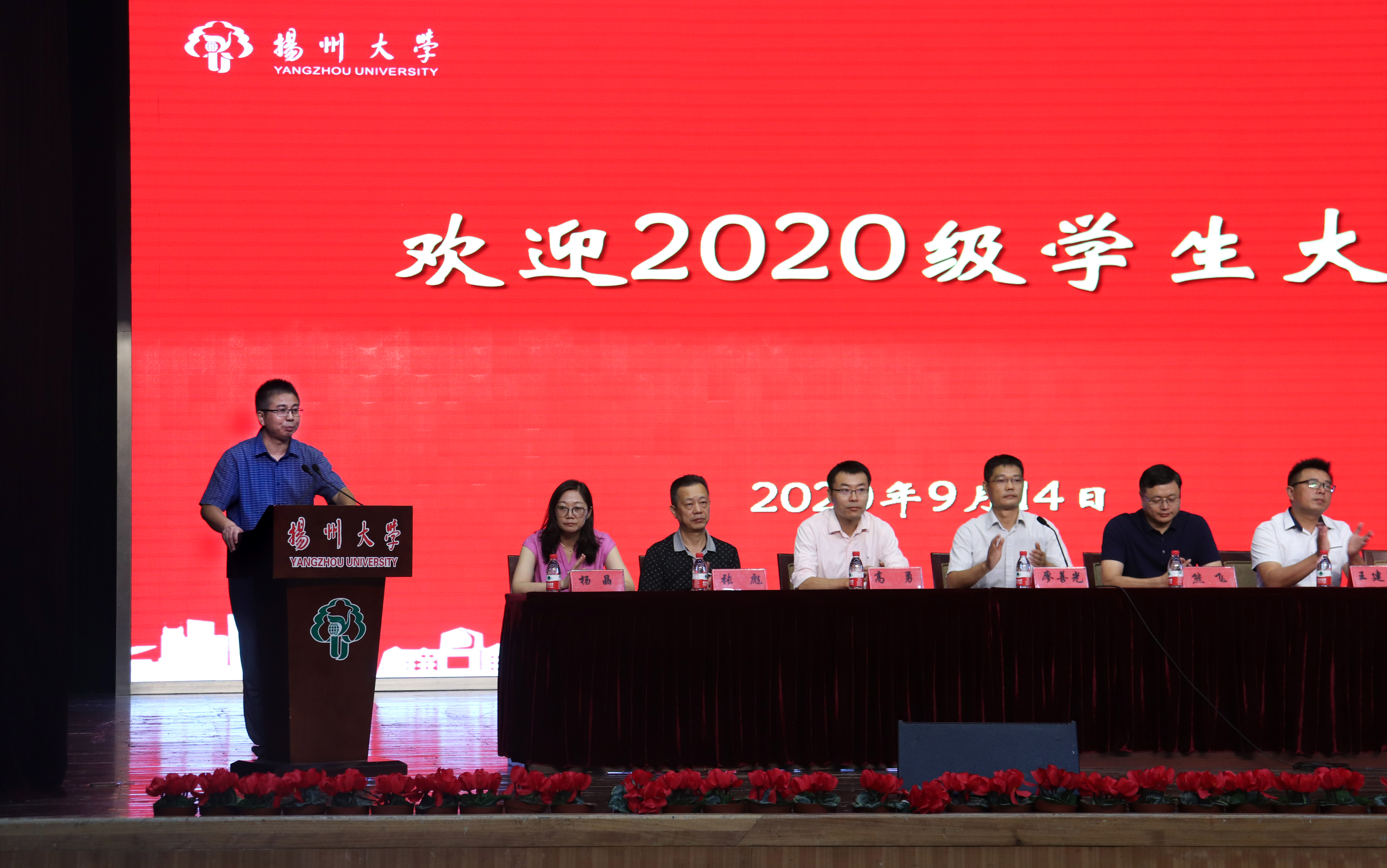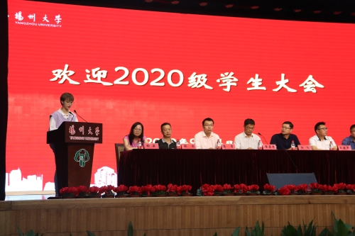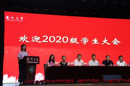 迎新大会上,教师代表吴健老师、老生代表闫龙英同学、本科生新生代表魏雨璠同学、研究生新生代表李灵芝同学先后发言。吴健老师在发言中希望新同学在大学里要增强专业自信、体悟专业价值,要刻苦学习、做好规划。闫龙英同学在发言中勉励新同学要用正确的态度去面对未来的大学生活,要在眼前的未知和憧憬中学会独立和成长。魏雨璠同学代表全体新同学郑重承诺要以勤为径,以苦作舟,全力以赴地努力学习。李灵芝同学在发言中指出研究生的学习要更注重主动性和批判性,要提高素质修养、扩充知识储备,做坚苦自立的扬大人。
