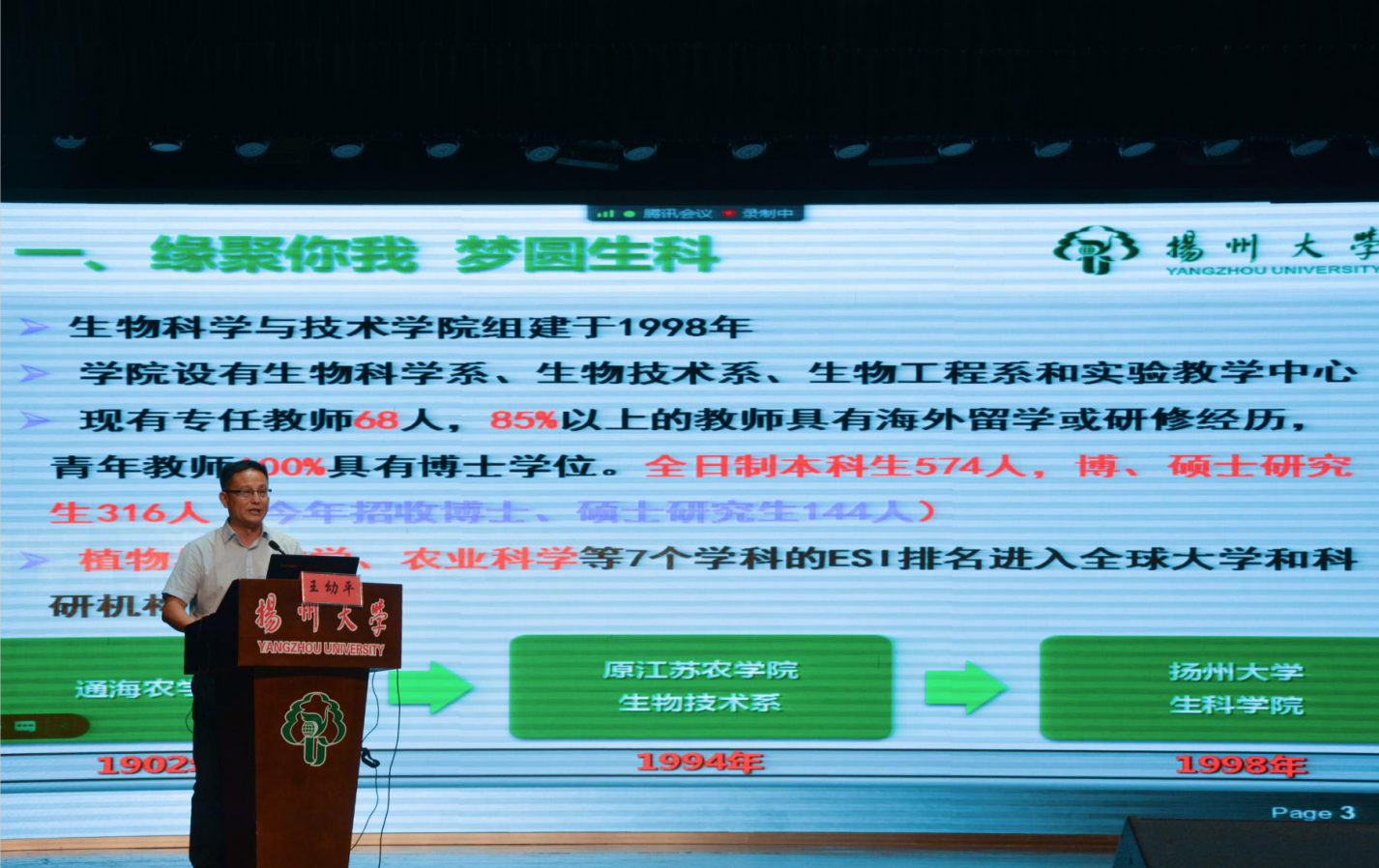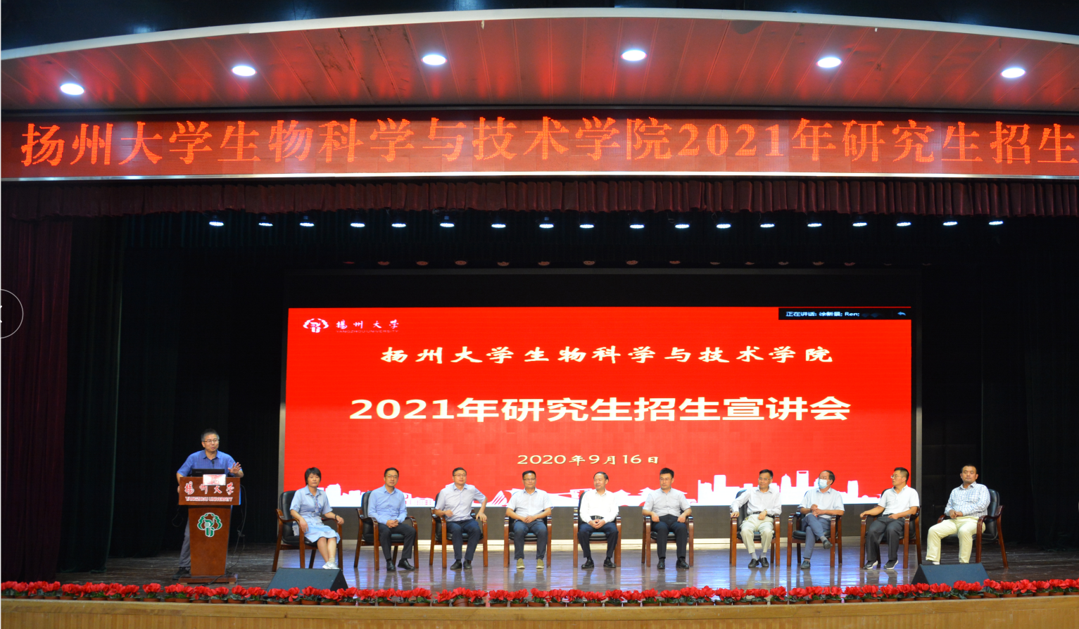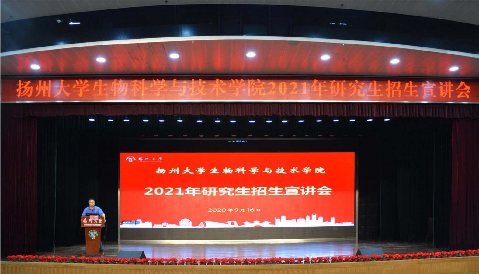 9月16日下午,学院在荷花池校区大学生活动中心三楼小剧场举办2021年研究生招生宣讲会,扬州大学校长、我院微生物生物学和遗传学带头人焦新安教授、各学科带头人参加了会议,院长黄金林教授主持会议