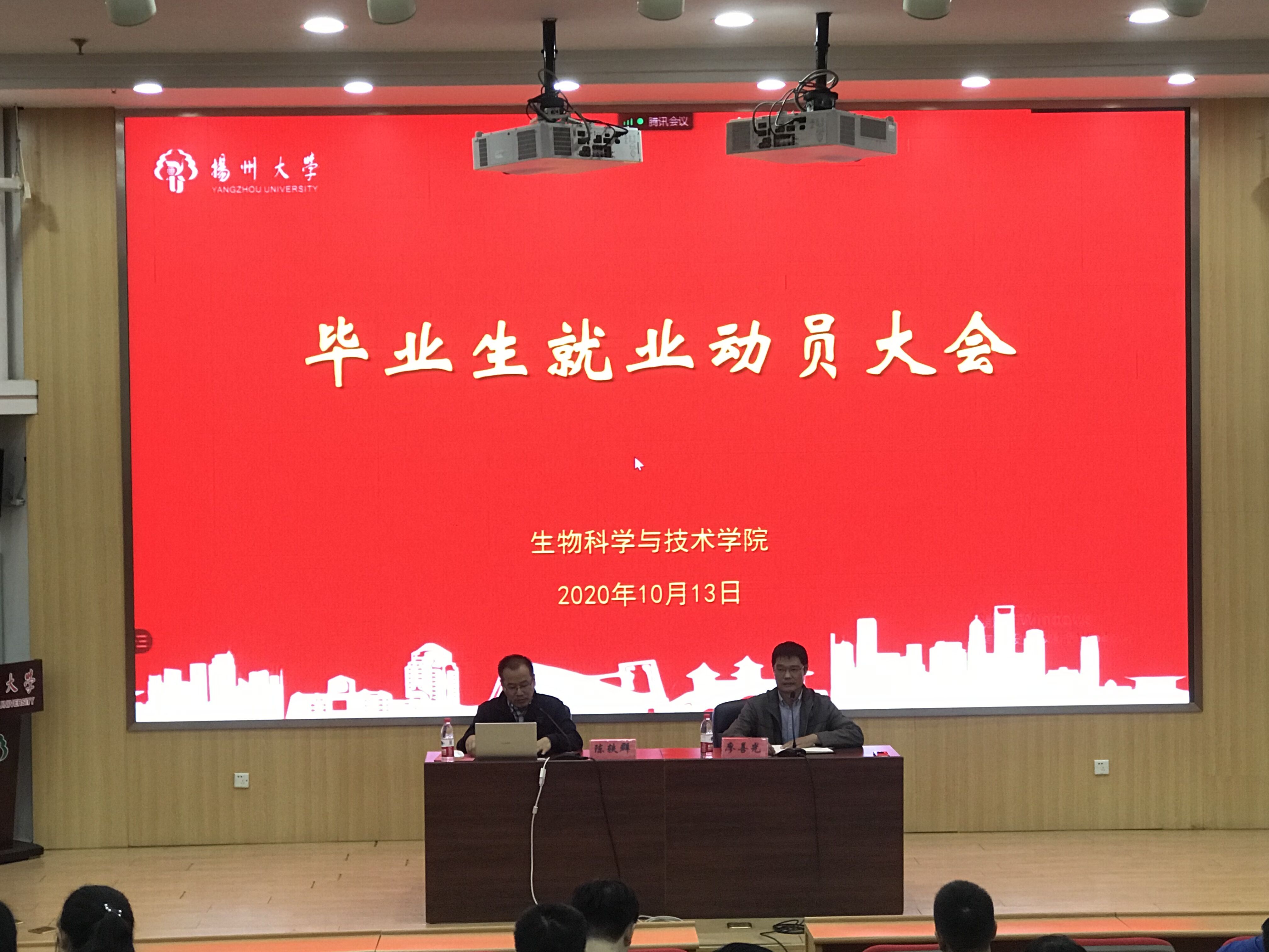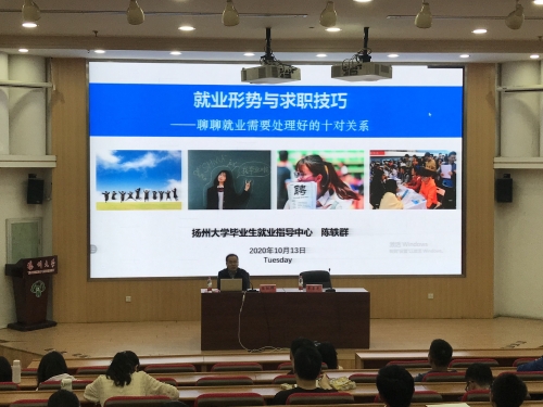 10月13日晚7:00,学院在荷花池校区逸夫图书馆报告厅举办2021届毕业生就业动员大会暨就业形势专题报告会,校毕业生就业指导中心主任、学生工作部(处)副部(处)长陈轶群应邀做就业形势专题报告,院党委副书记廖善光主持会议。