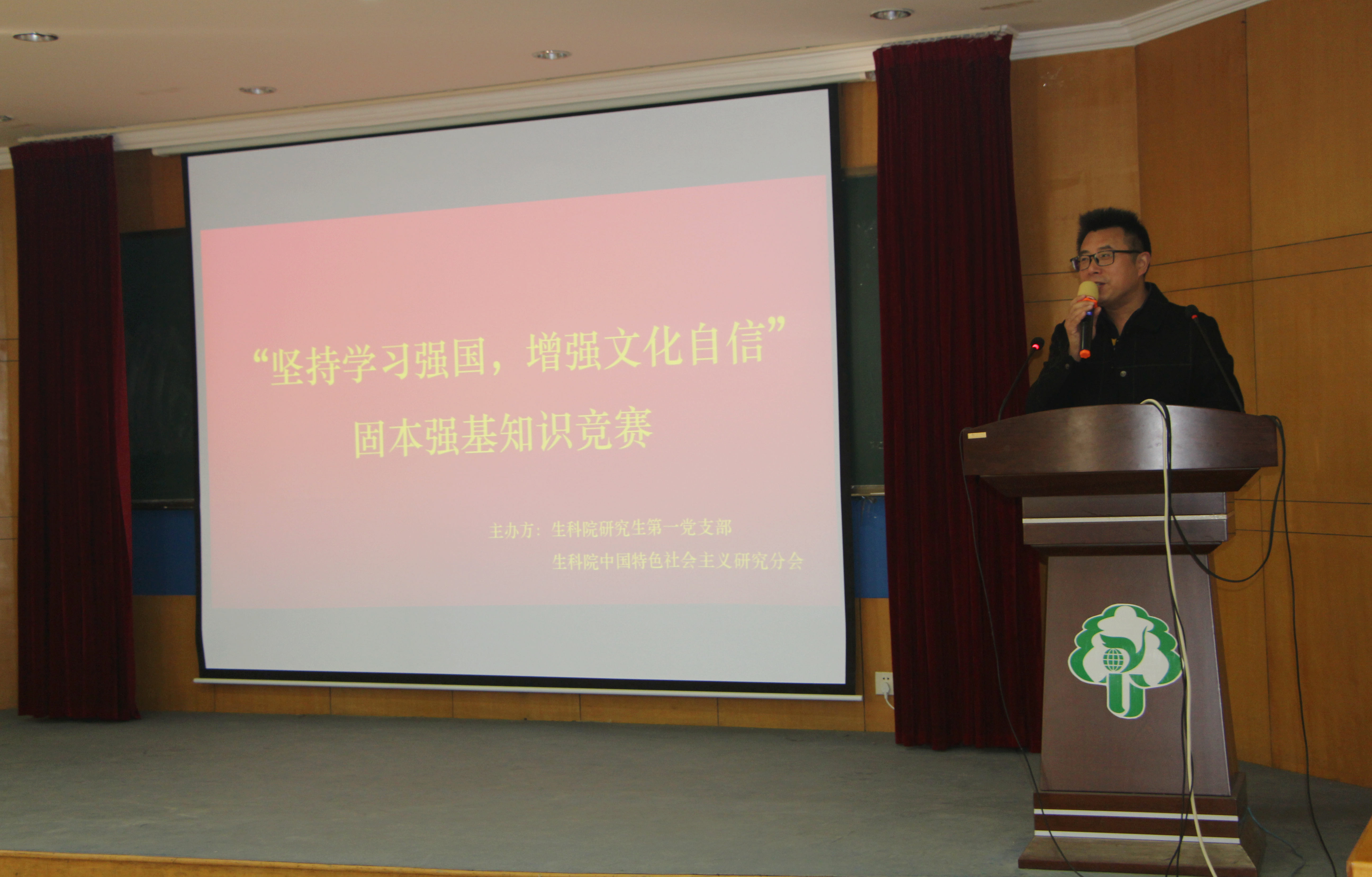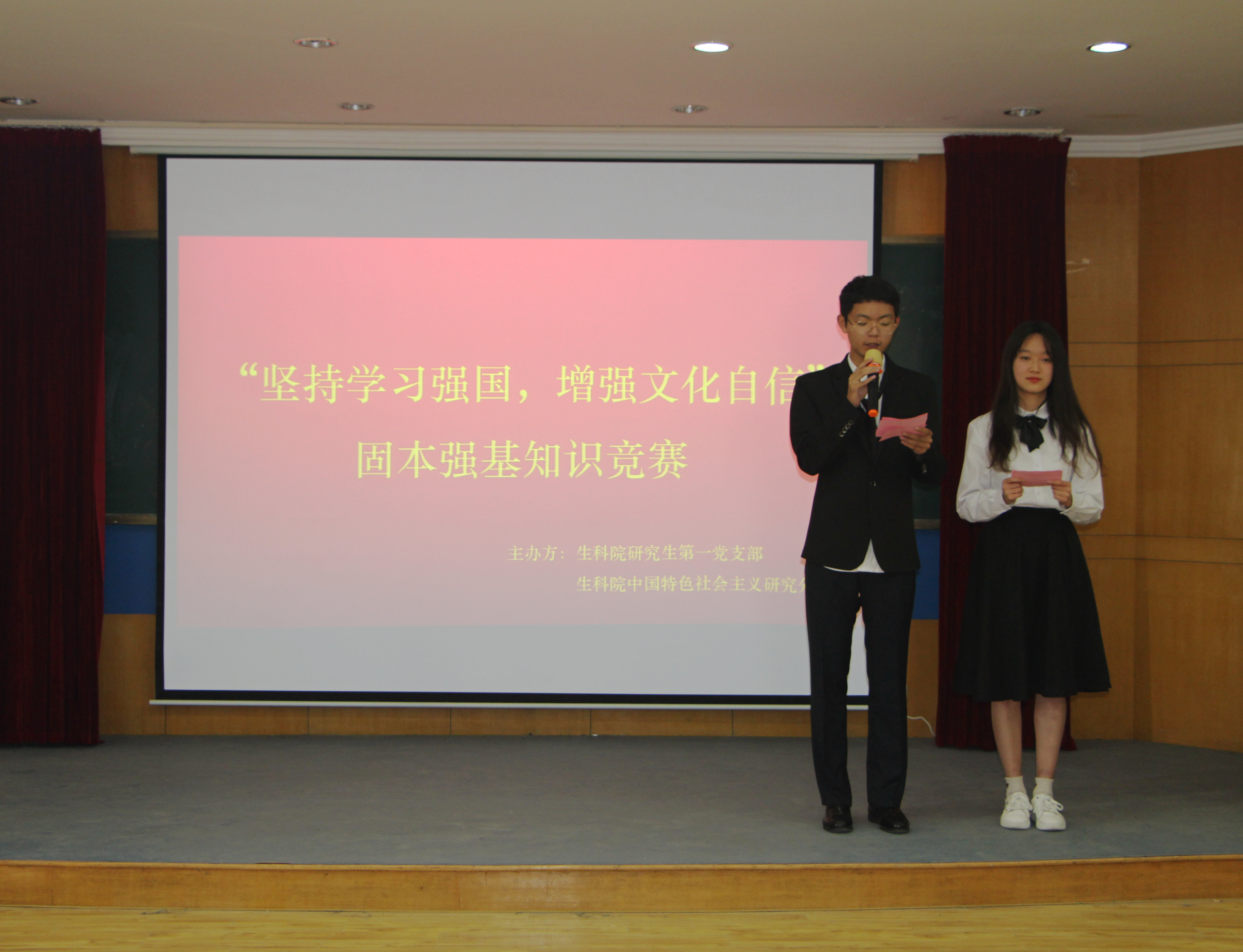 11月7日下午,生科院研究生第一党支部于学院报告厅隆重举行第一届“坚持学习强国,增强文化自信”固本强基知识竞赛。院党委书记王建军、研究生第一党支部书记朱素娟出席活动。生科院研究生和本科生党员、入党积极分子、团员代表80余人参加活动。
