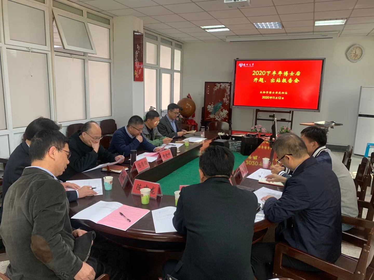 生物学博士后流动成功举办2020年下半年开题、出站答辩评审会11月12日,学院在三楼会议室举办生物学博士后流动站开题、出站答辩评审会,熊丹、宋丽、林令尚3位新进站博士后进行了开题报告,丁笠1位在站博士后进行了出站答辩汇报。福建农林大学动物科学学院陈吉龙教授、中国药科大学邓大伟教授、江苏里下河地区农业科学研究所李爱宏研究员、扬州大学农业科技发展研究院孙伟教授、扬州大学生物科学与技术学院黄金林教授担任了此次评委,人事处汤学俊副处长、博士后管理办公室陈宗春老师应邀参加会议。陈吉龙教授担任此次开题审查小组组长和出站答辩委员会主席,生物学博士后流动站全体博士后参与了聆听学习.