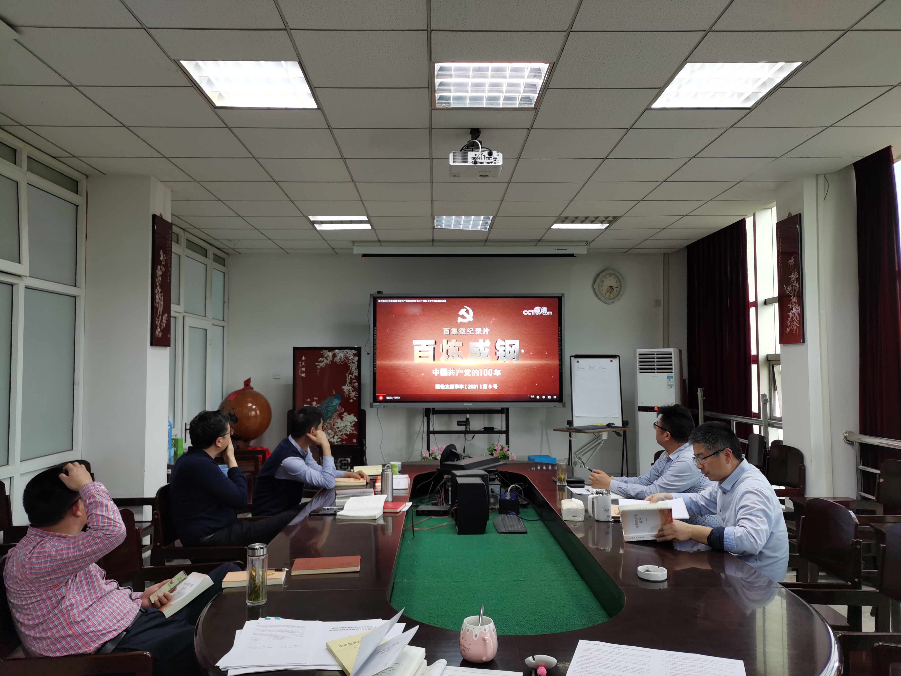 会上还观看了党史纪录片《百炼成钢:中国共产党的100年》,全体院领导参加了会议。