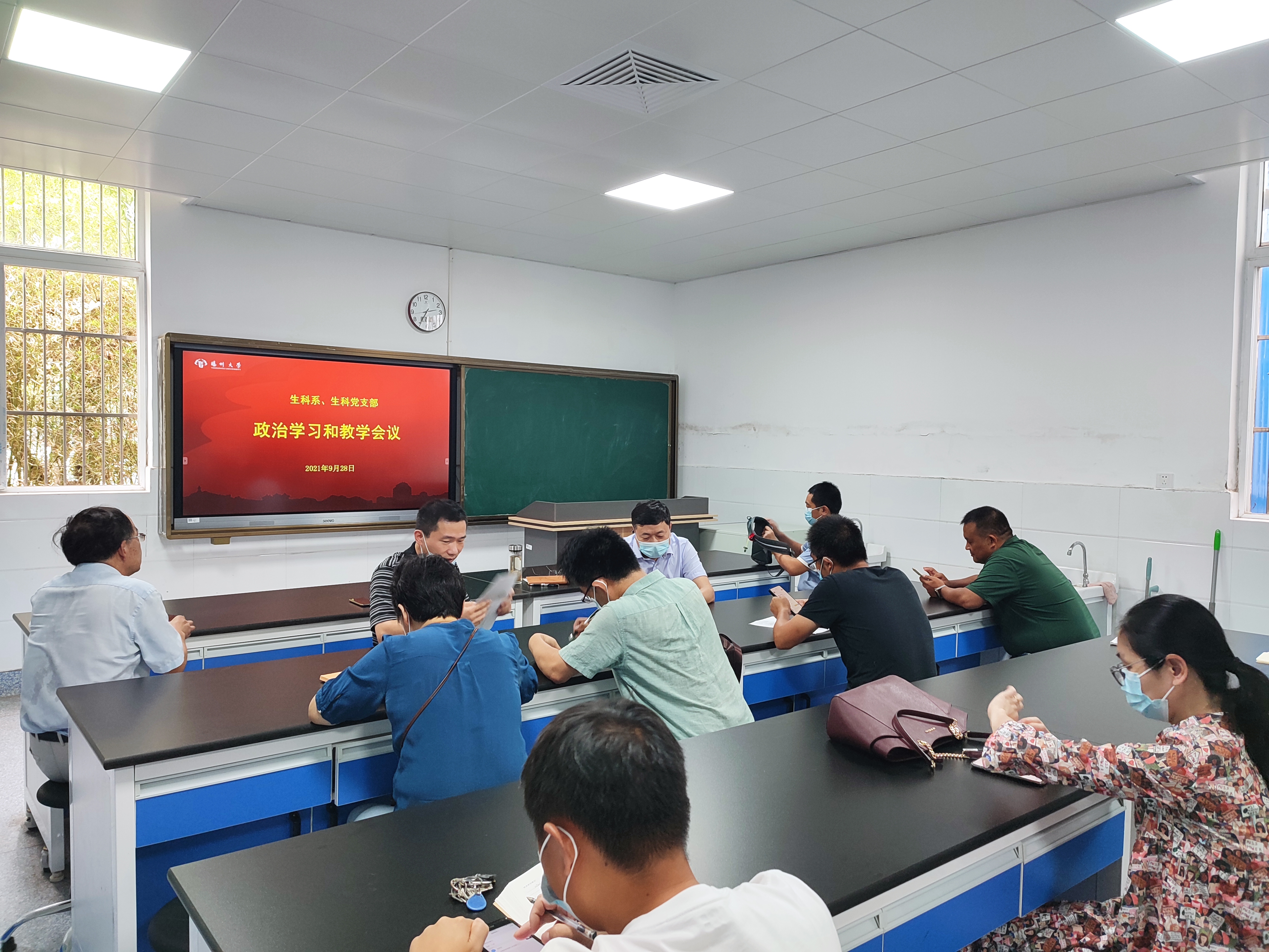 9月28日下午,生科教工党支部、生物科学系在21号楼108室开展治理论学习活动,系部全体教师和教工生科党支部党员全体参加。
