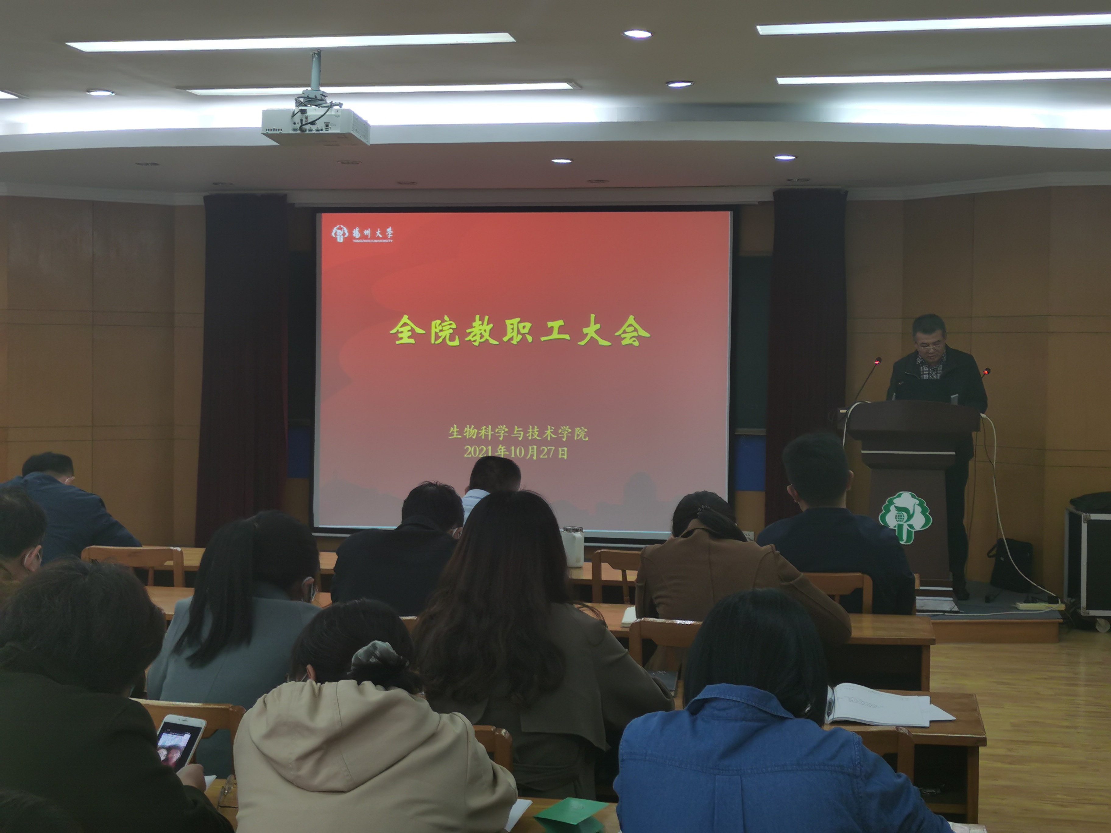 10月27日下午,学院在院二楼报告厅召开全院教职工大会,院党委书记王建军主持会议。