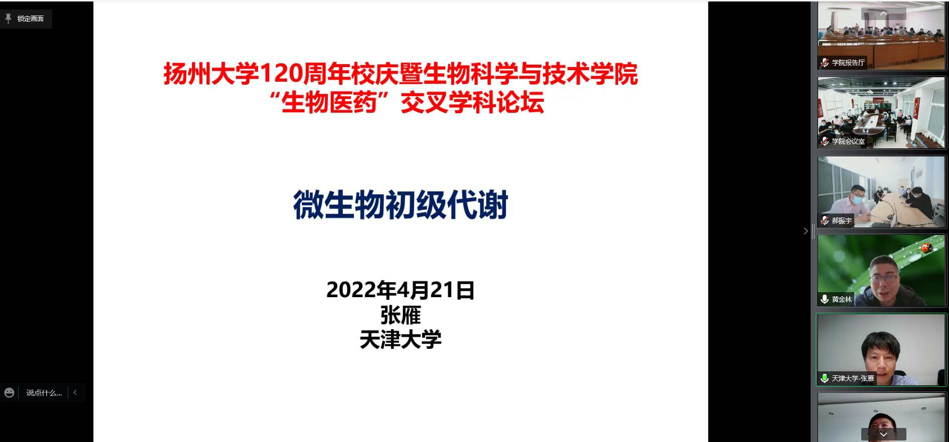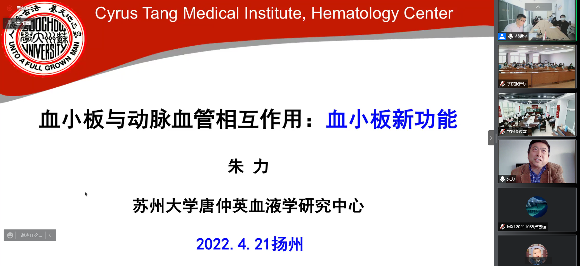 2022年4月21日下午,我院举办2022年“生物医学”交叉学科论坛。天津大学张雁教授、北京协和医学院余佳教授、中山大学赵萌教授、中国医学科学院血液学研究所朱平研究员、浙江大学钱鹏旭教授和苏州大学朱力教授应邀做学术报告,本次会议采用“线上+线下”模式,500余名师生参加了活动。