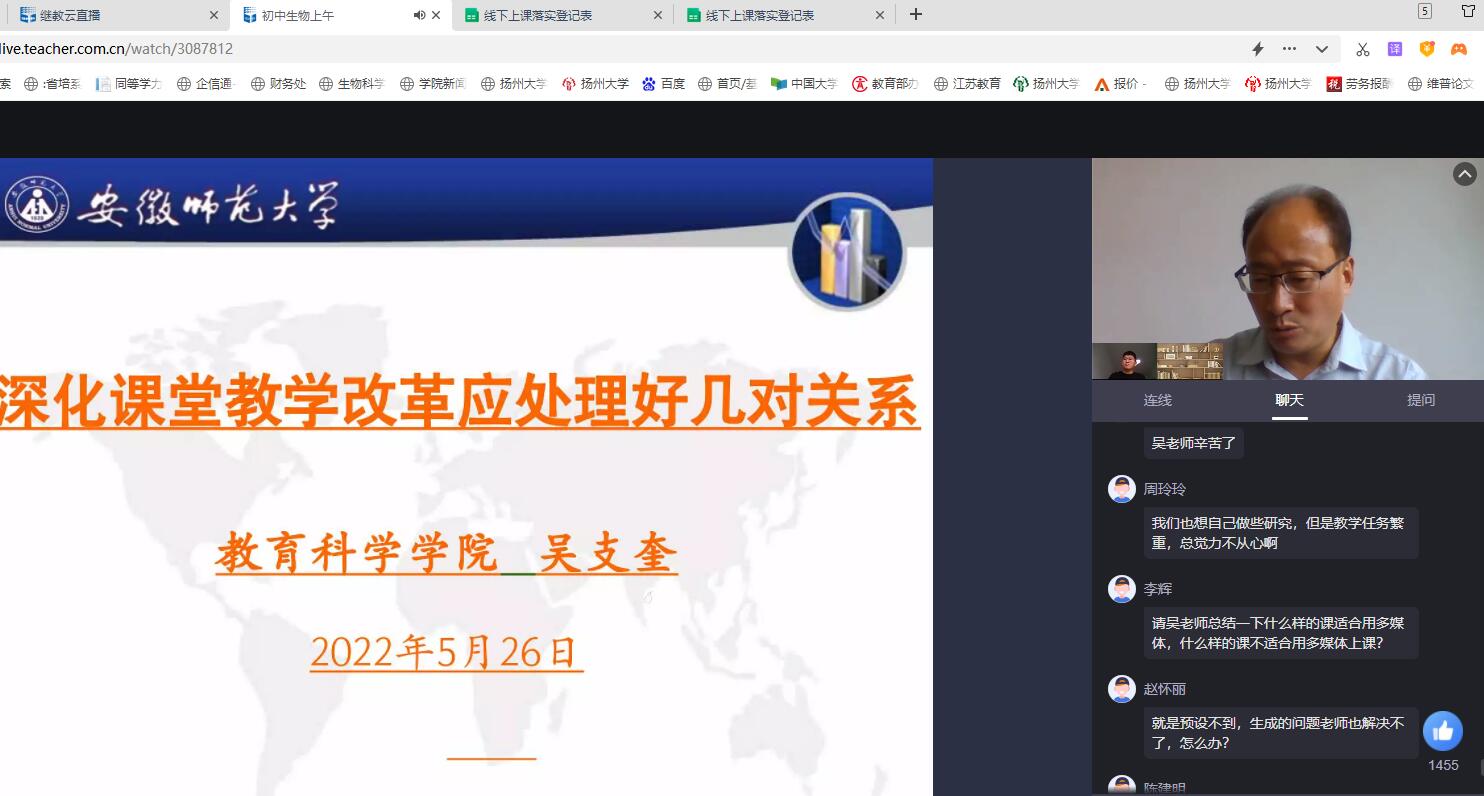 实施过程中,全面落实“以问题为中心、以案例为载体”培训方针,我院组织国内知名课程专家、国培专家、一线优秀教师、教研员等,针对河北省初中生物骨干教师的特点,梳理教学实践中突出问题,发现核心问题,将教学实际中的典型问题与课程标准中对应的重点、难点问题结合起来,确定培训主题,制定培训课程。集中培训阶段,从师德师风报告、教育行为规范特点、初中生物学素养培养、初中生物学新课标解读、教学经验分享、微教学资源制作技术与应用、初中生物案例探索与实践、疫情常态下的线上教学等方面,专家们给参训学员上了一堂堂精彩的云课程。