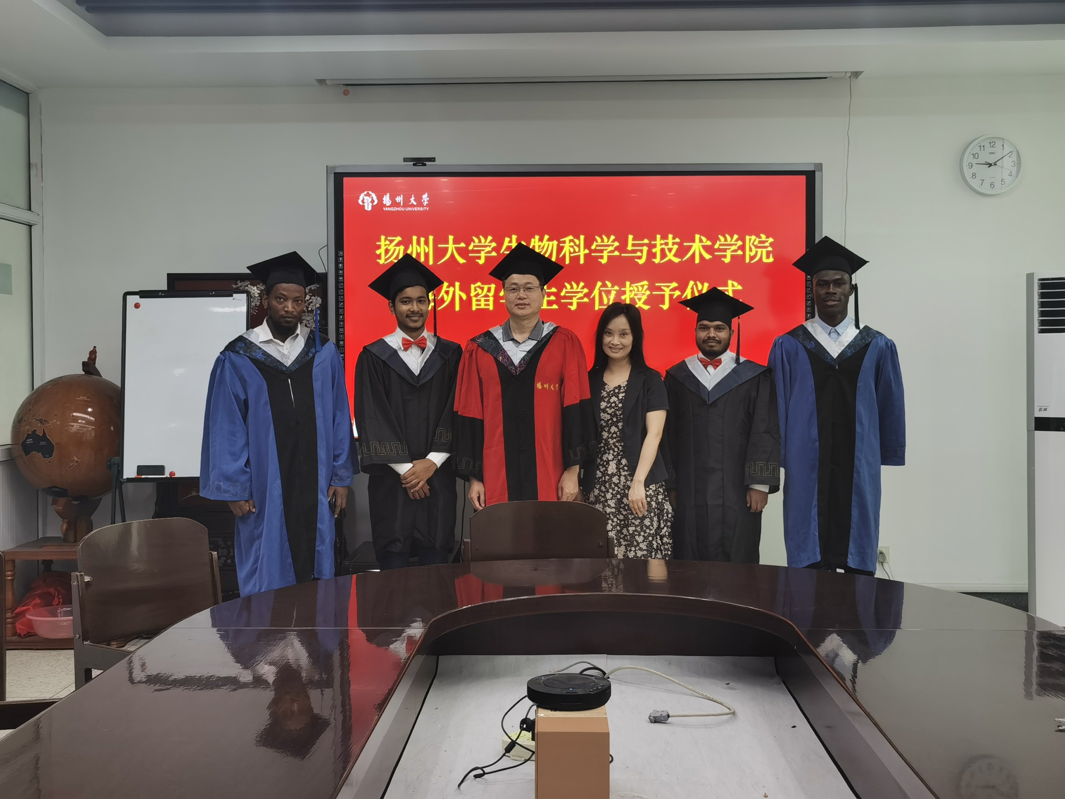 2018年我院经过选拔,录取了生物技术专业成建制本科生及生态学、生物学硕士海外研究生来到我院,与本院学子同班上课、同组科研、共校生活,缔结了深厚的同窗友情。经过四年苦读,4名成建制本科留学生及2名海外研究生顺利达到扬州大学毕业要求,获得了学位证和毕业证,成为了我院首批毕业的留学生。