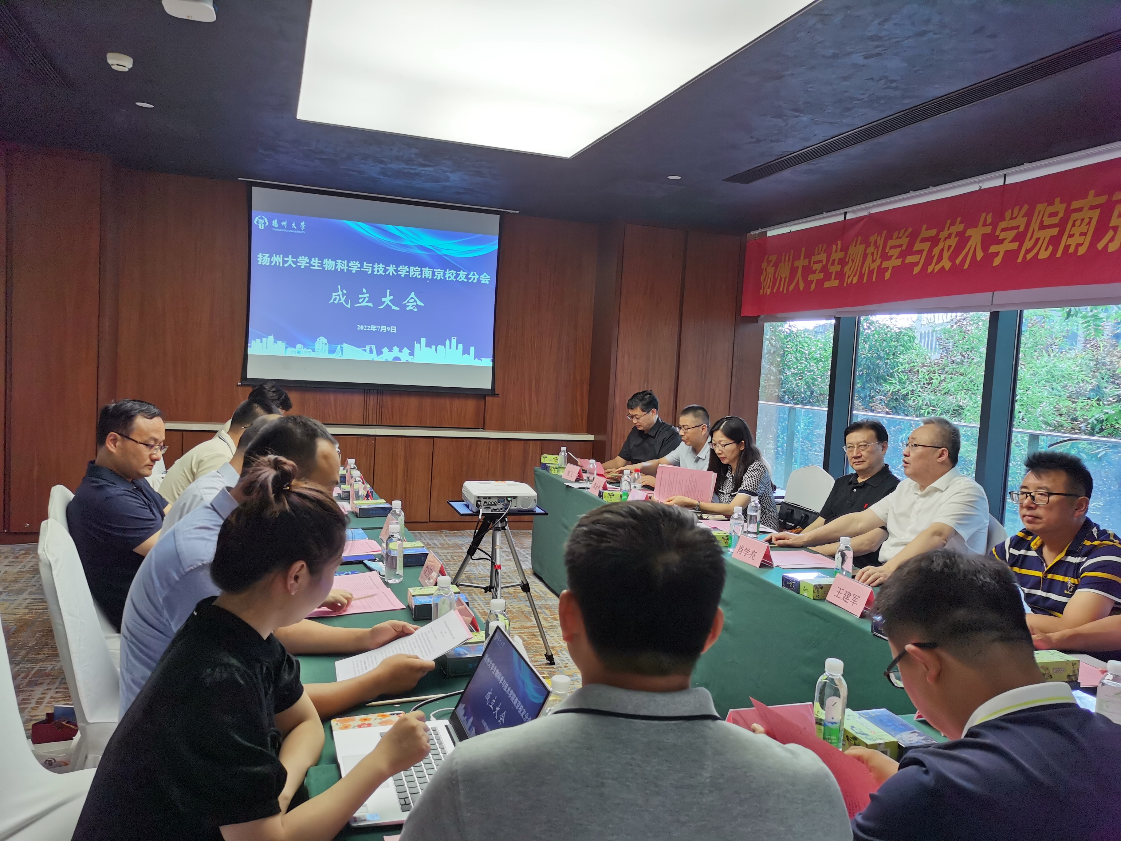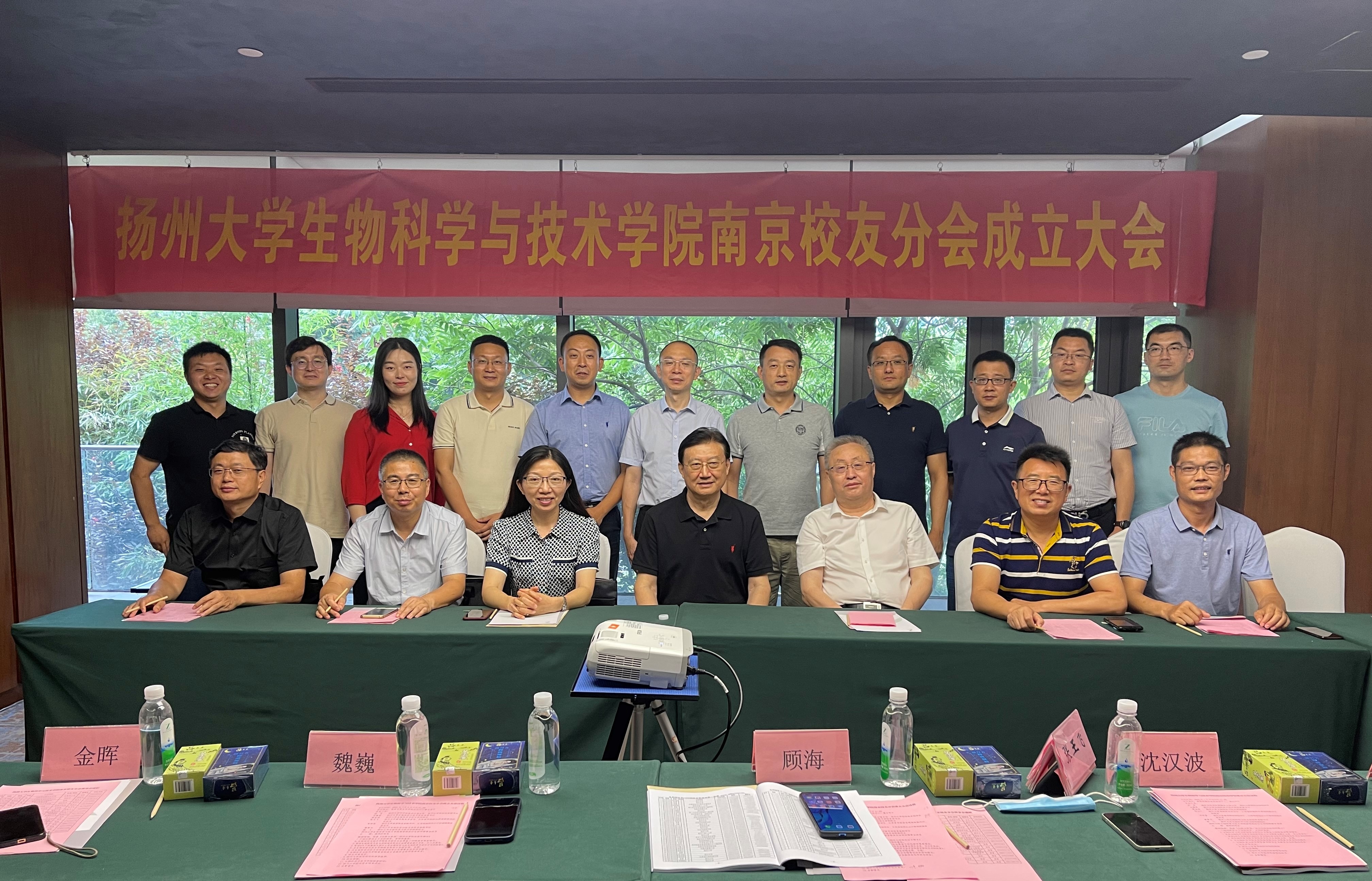 2022年7月9日下午,扬州大学生物科学与技术学院南京校友分会成立大会在南京举行。扬州大学对外联络办公室主任、扬州大学校友总会秘书长洪岑,南京校友会会长张王飞、秘书长肖学亮,生物科学与技术学院党委书记王建军、院长黄金林、党委副书记廖善光、副院长熊飞,以及学院南京校友分会拟任理事会成员及校友代表欢聚一堂,共同见证扬州大学生物科学与技术学院南京校友分会的成立。