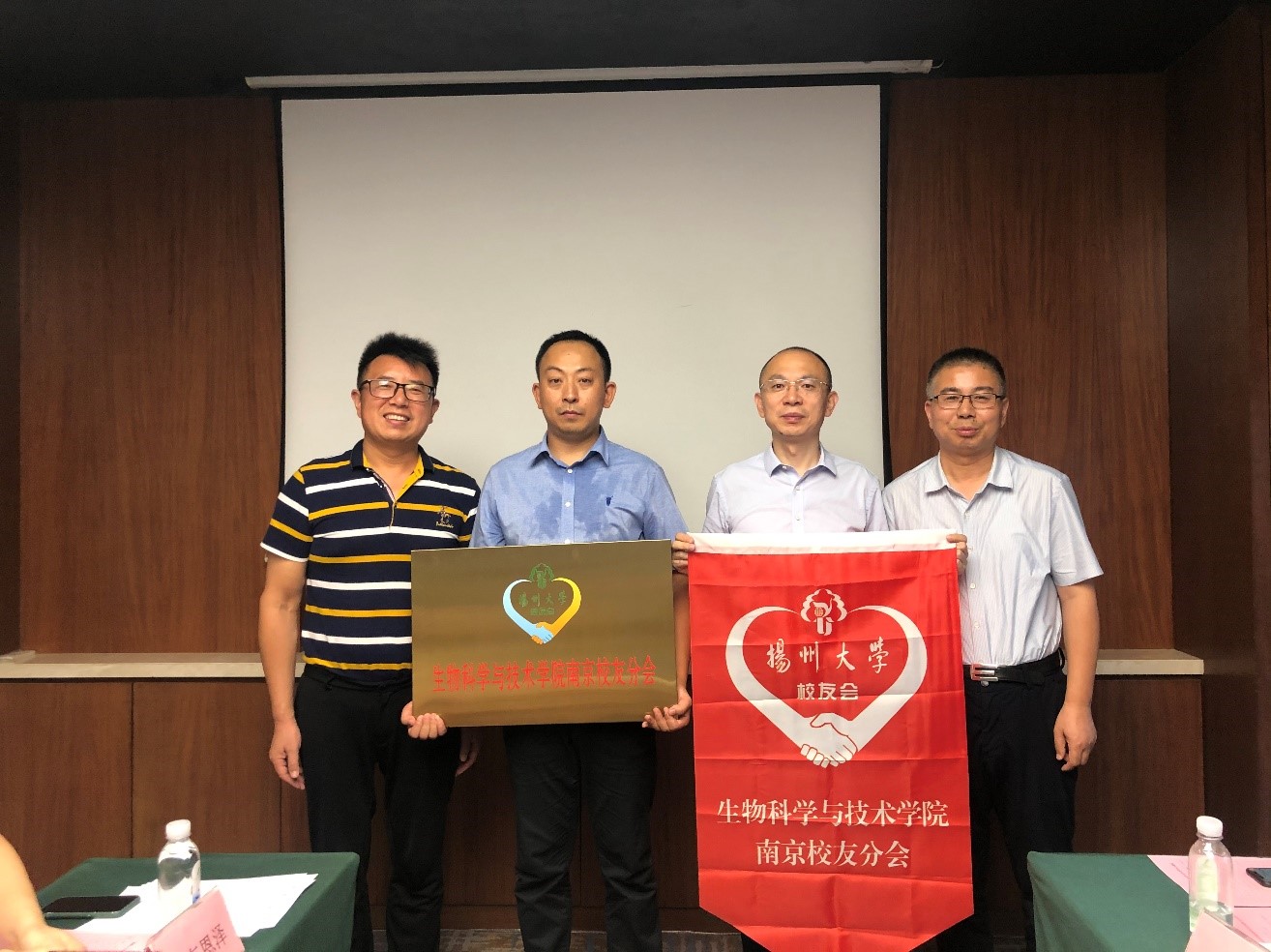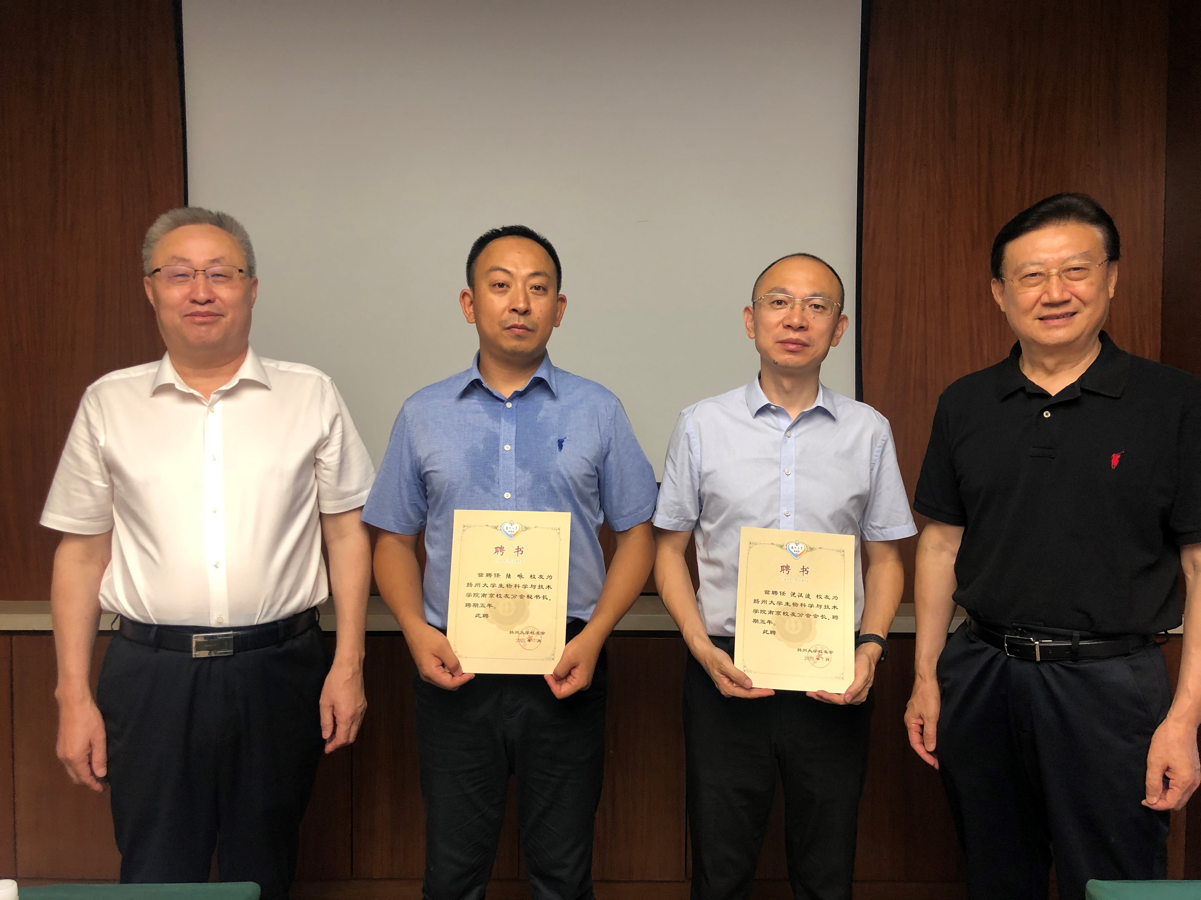 洪岑代表学校宣读了《关于同意成立扬州大学生物科学与技术学院南京校友分会的批复》,王建军和黄金林为扬州大学生物科学与技术学院南京校友分会授会牌、会旗,张王飞、肖学亮为新当选的会长、秘书长颁发聘书,王建军和黄金林为理事会其他成员颁发聘书。