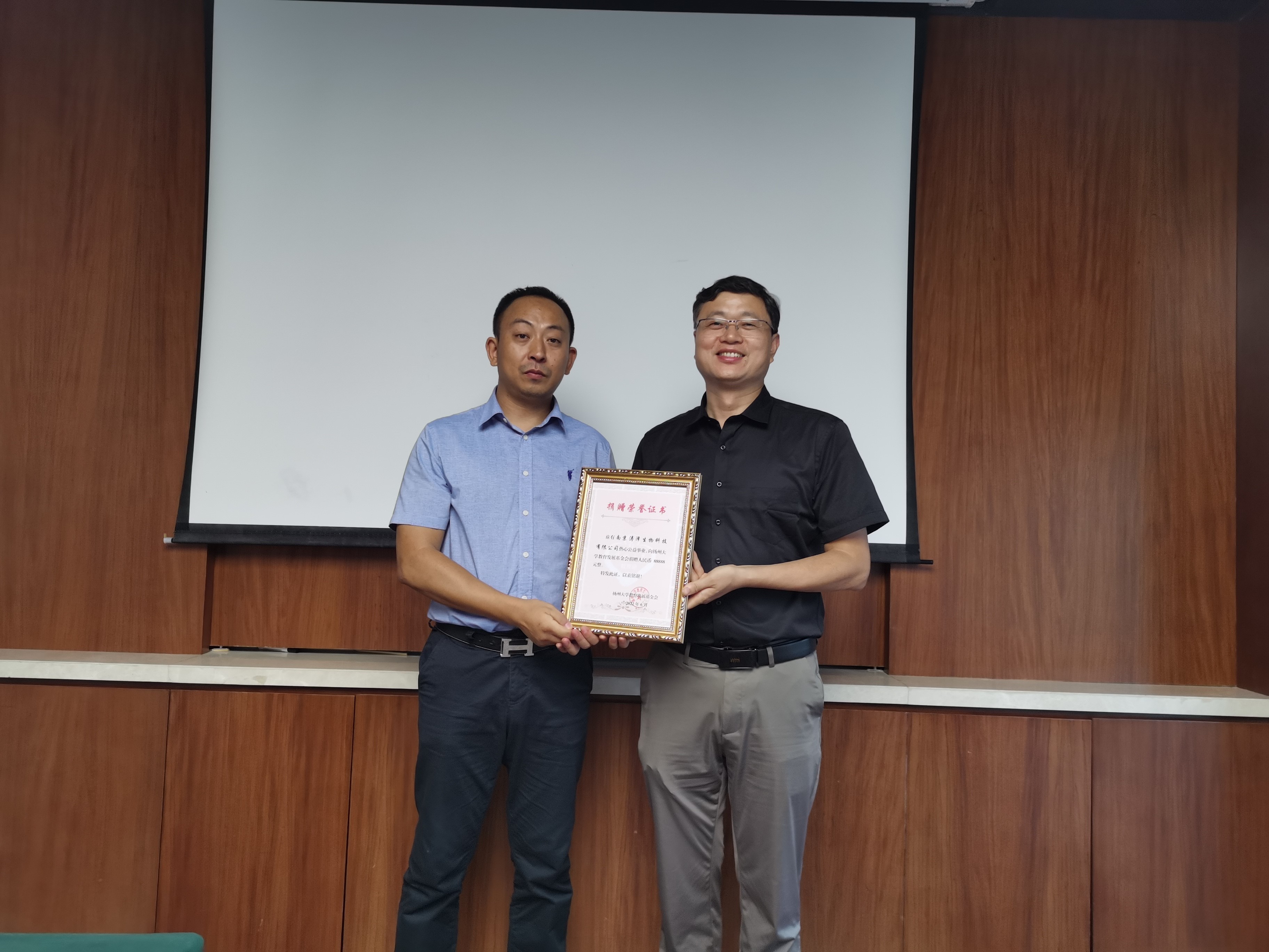 为表达对母校的感恩之情,陆咏校友向扬州大学教育发展基金会捐赠88888元,成立扬州大学生物科学与技术学院“涛泽生物”奖学金,用于表彰生科学院优秀学子,支持学院事业发展。