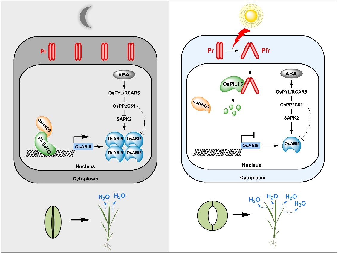 该团队通过7年的研究,以水稻为主要研究材料,以植物红光信号传导路径的关键基因-光敏色素互作因子(PIFs)为切入点,揭示了红光通过红光受体调控气孔开度的新路径;首次提出红光可以不依赖光合作用,与植物激素脱落酸(ABA)协同调控气孔运动(气孔张开和关闭),创新并丰富了气孔运动理论,也为创制节水抗旱作物做准备。