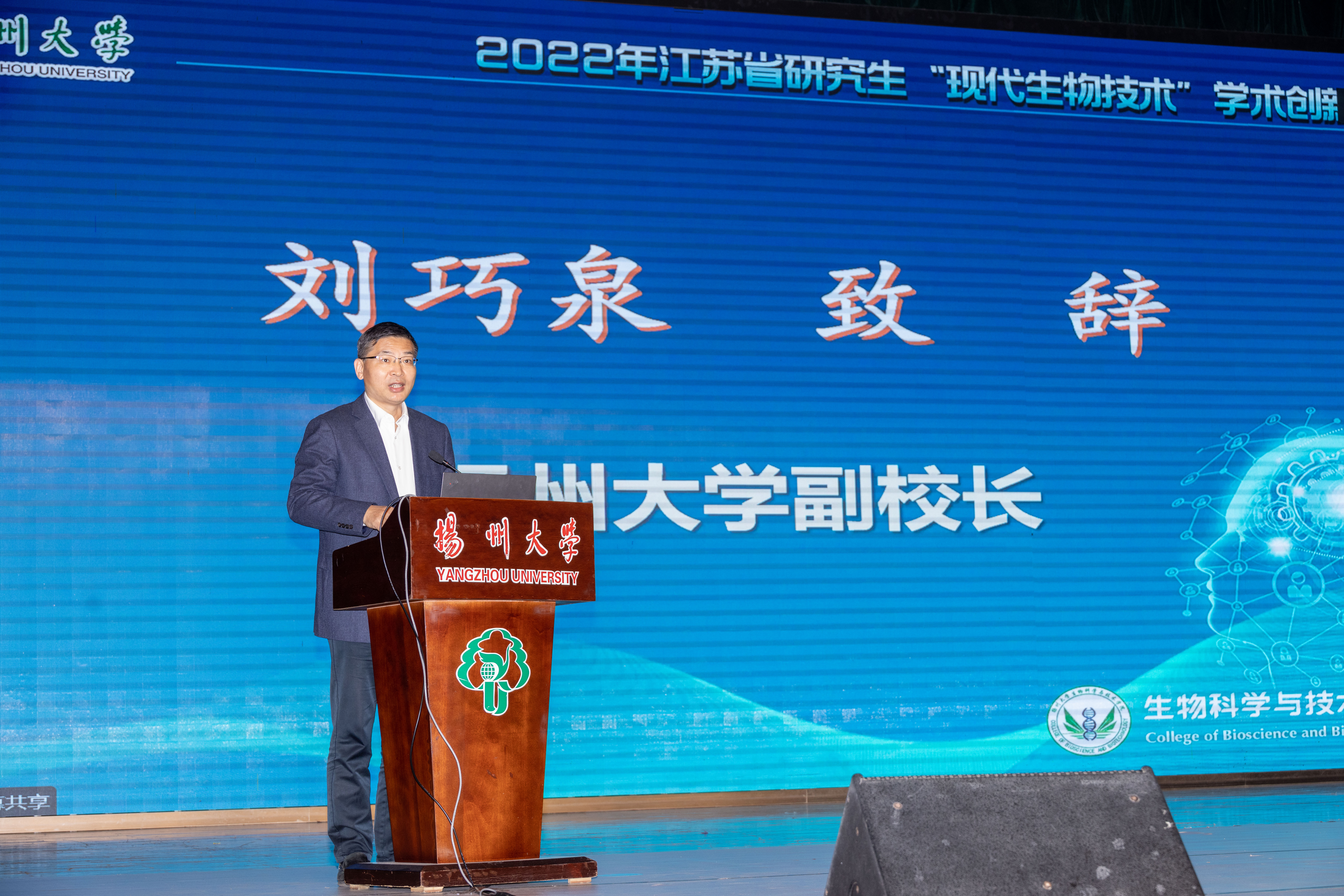 10月29日,由江苏省理学II类研究生教育指导委员会主办、校研究生院与生物科学与技术学院承办的江苏省研究生“现代生物技术”学术创新论坛在我校召开。副校长刘巧泉出席论坛并致辞。刘巧泉介绍了我校研究生培养方案,并对与会专家学者的到来表示欢迎。他强调广大研究生要拓宽学术视野,既要“低头”扎实做好科学研究,也要“抬头”珍惜与专家学者面对面学习交流的机会。