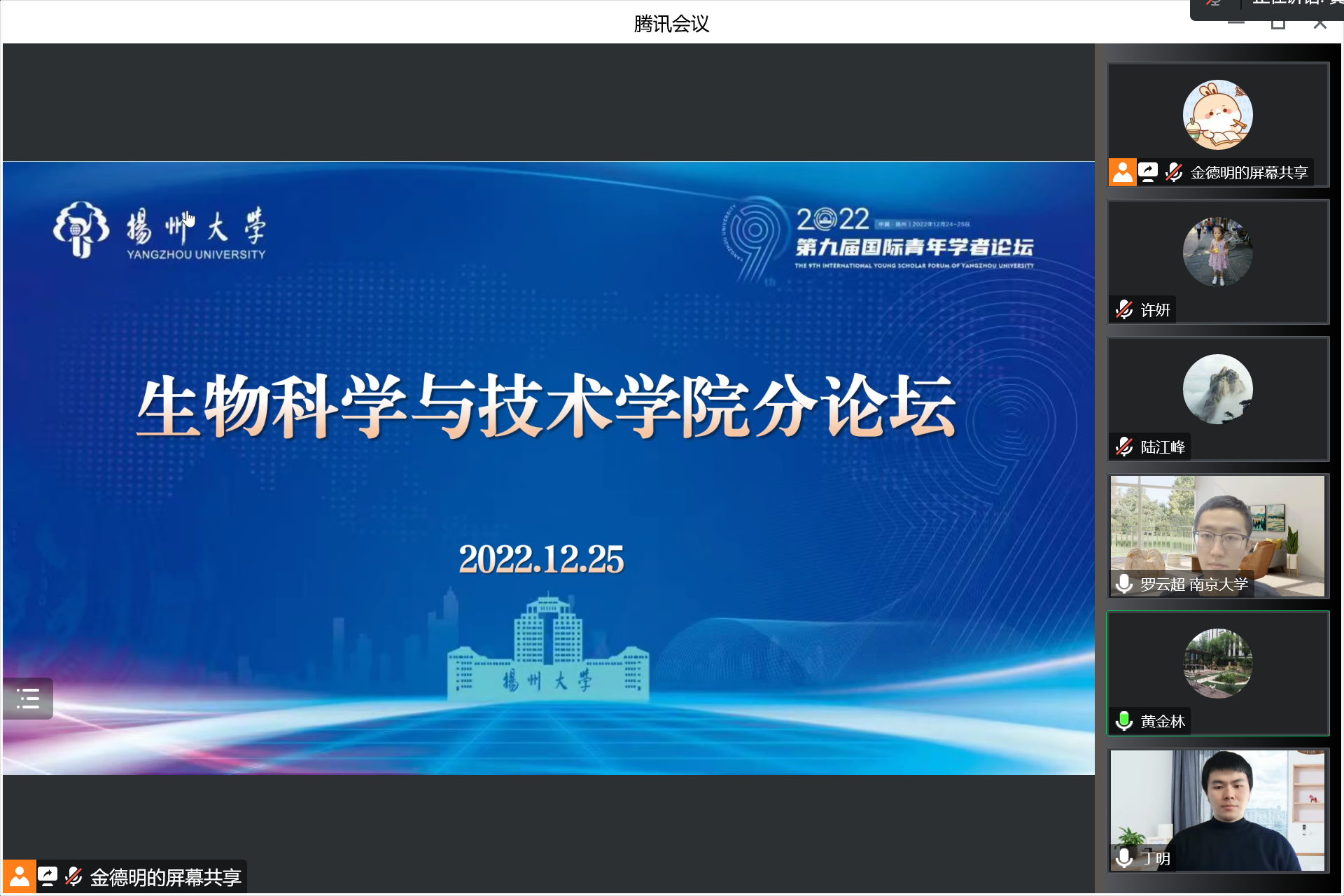 为更好搭建广阔学术交流舞台,吸引更多海内外优秀人才为学院事业高质量发展助力,12月25日下午,扬州大学第九届国际青年学者生物科学与技术学院分论坛在云端举行,论坛由黄金林院长主持。