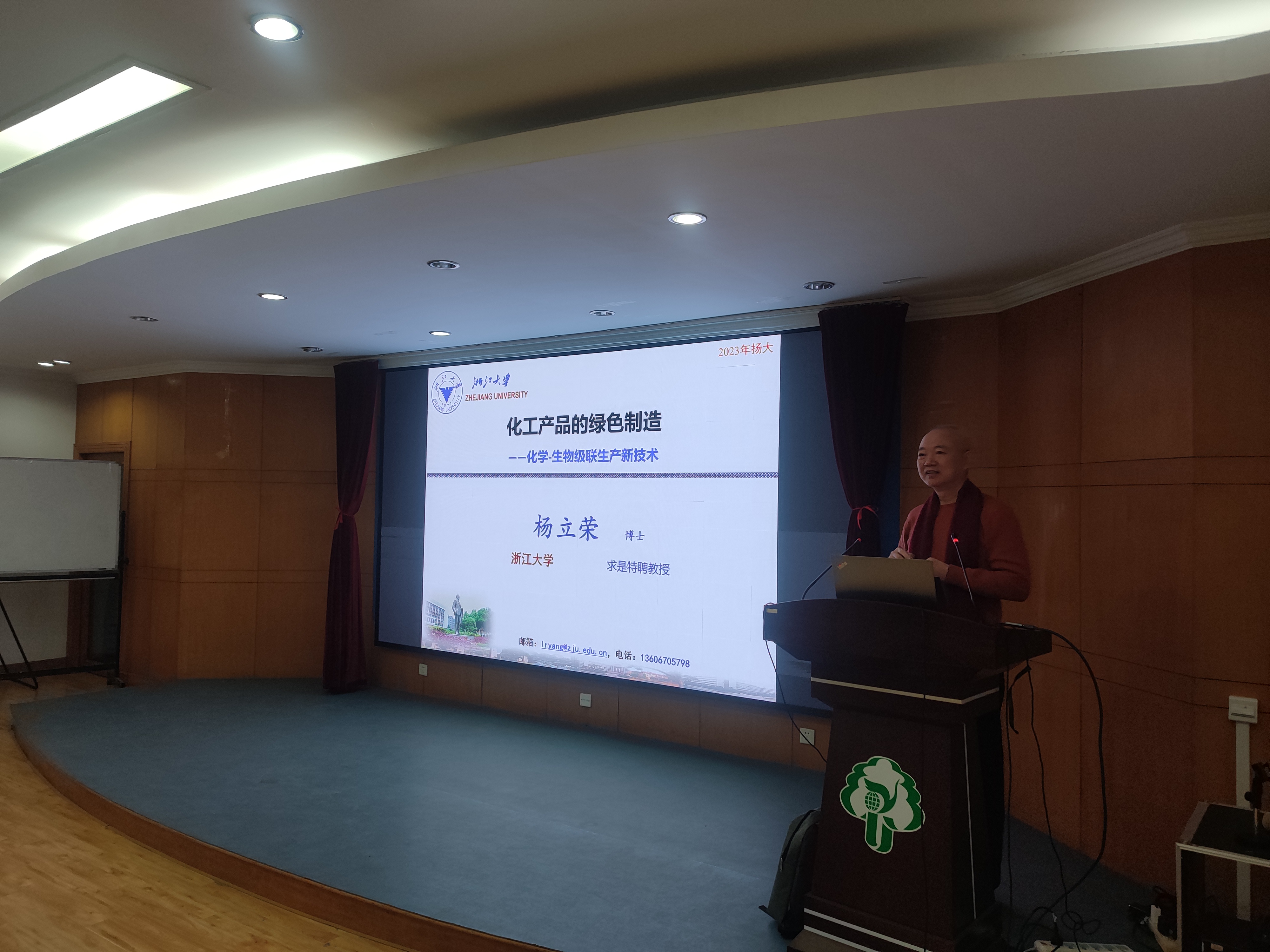 杨立荣教授是浙江大学化学工程与生物工程学院博士生导师,担任工业生物催化国家地方联合工程实验室主任。报告会上,杨教授以《化工产品的绿色制造—化学-生物级联生产新技术》为题,向我院师生介绍了化学催化耦合生物催化在绿色化工行业的创新技术及应用前景,以手性生物菊酯的制备、烟酰胺的生产链、L-草铵膦产品的开发为例,深入讲解了其课题组针对化工产品的手性改造、化工企业产品链的优化提质、新品种的研究开发等实践案例。